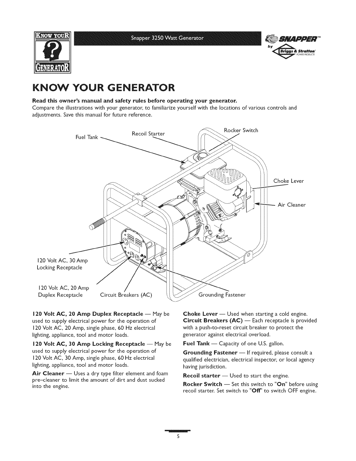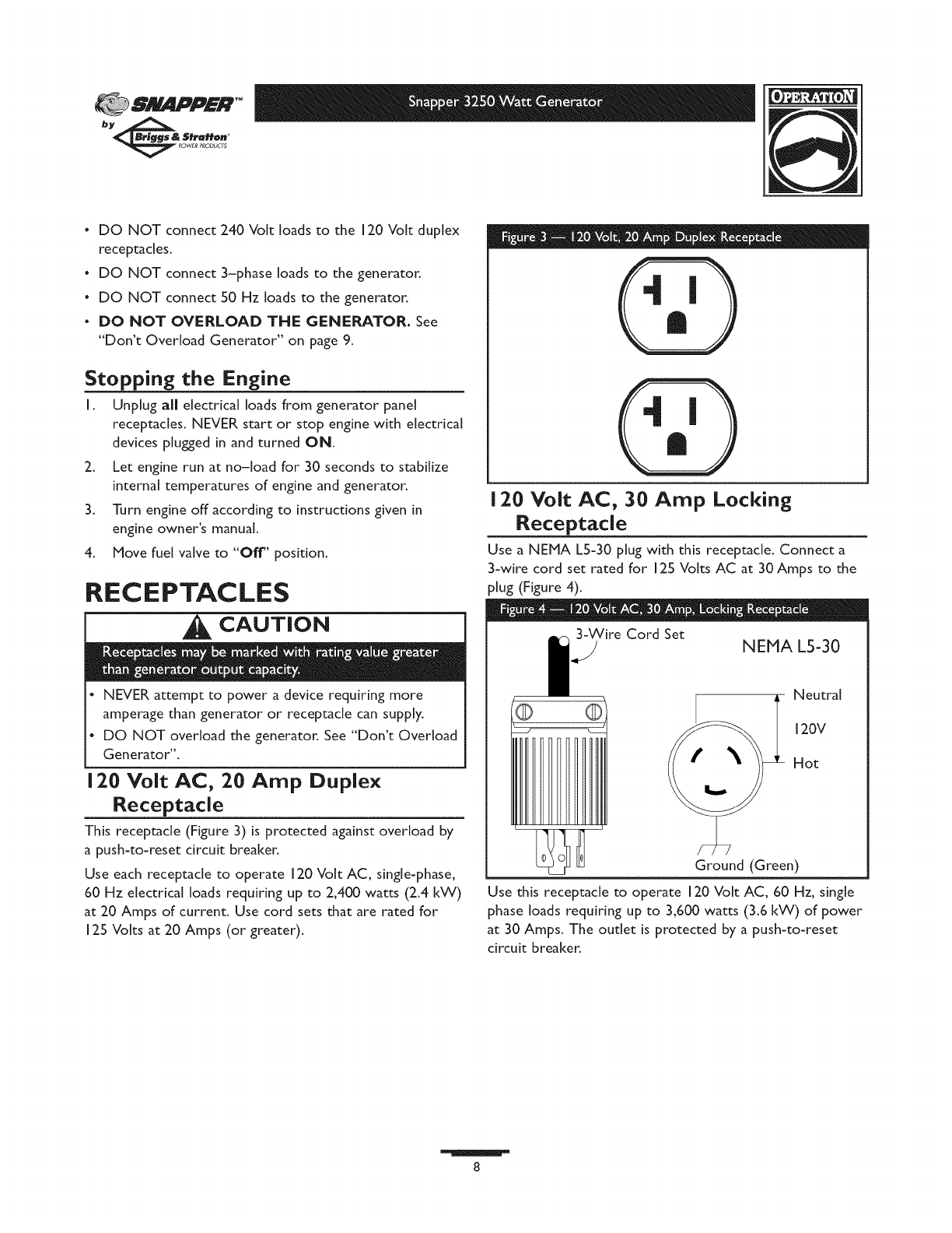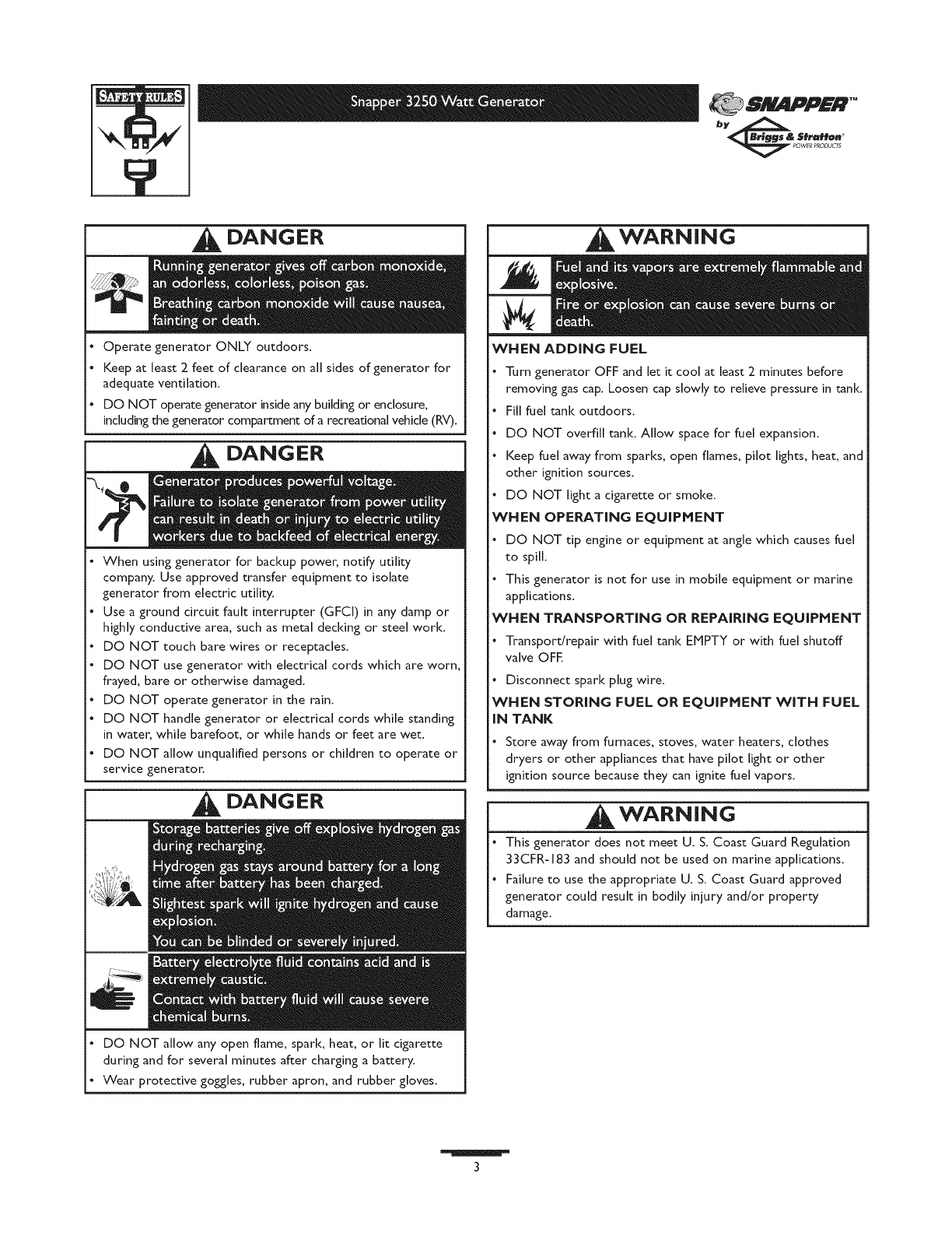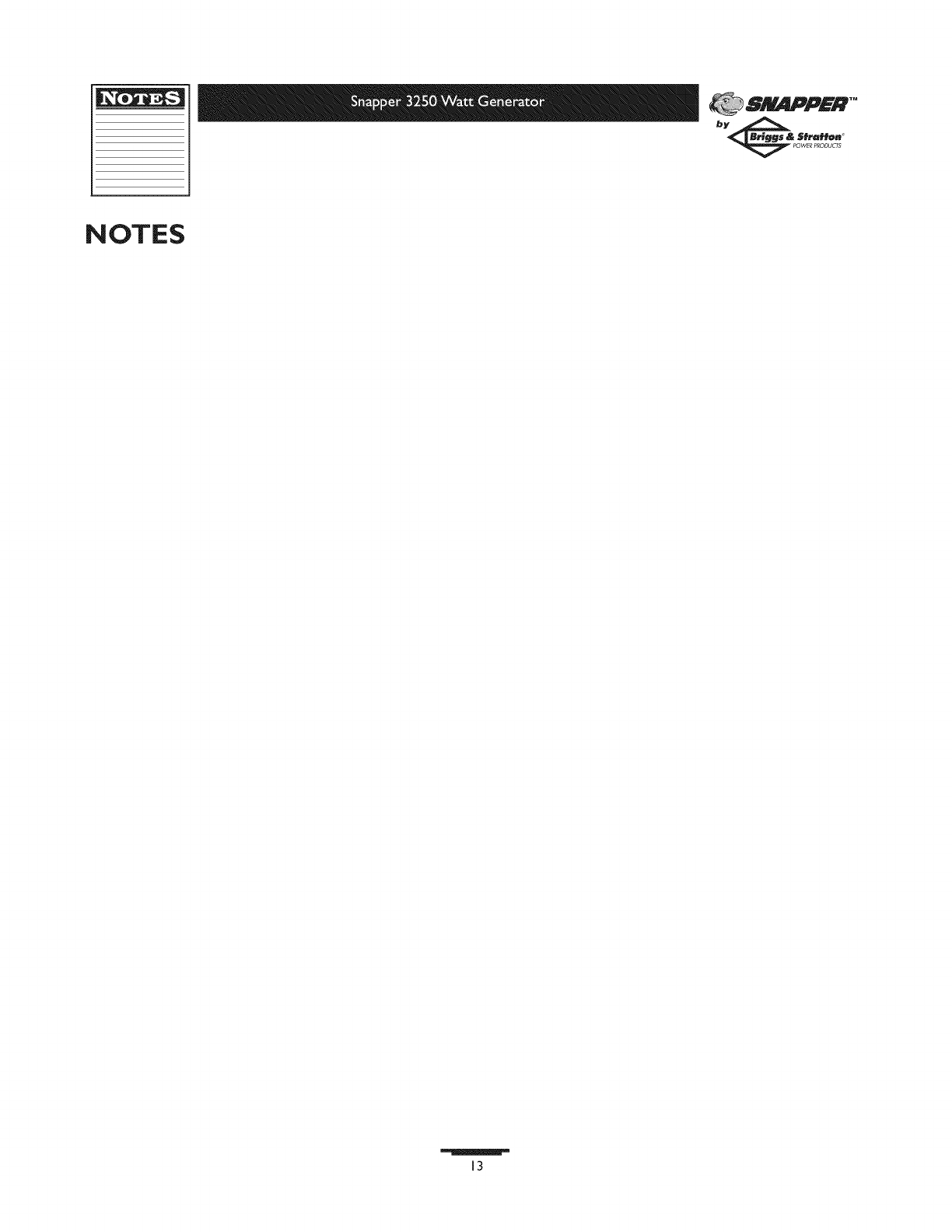 SNAPPER Generator Manual L0808313