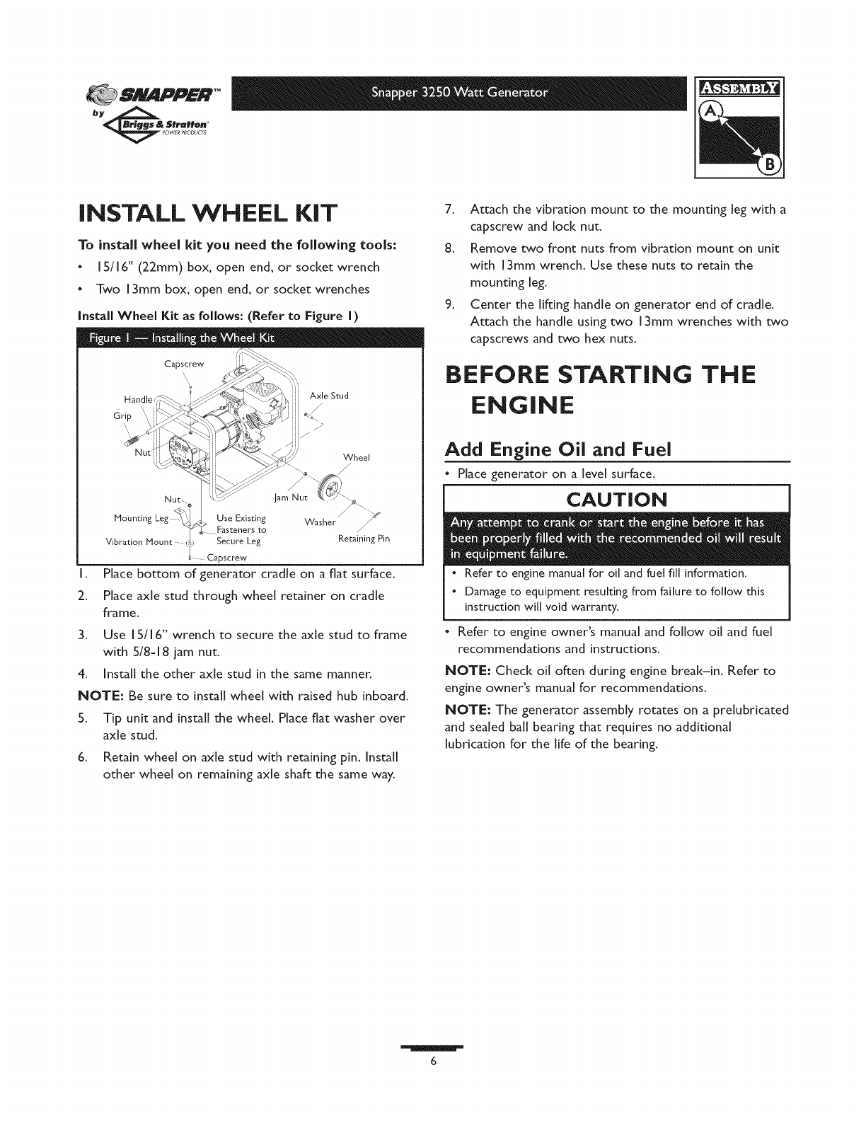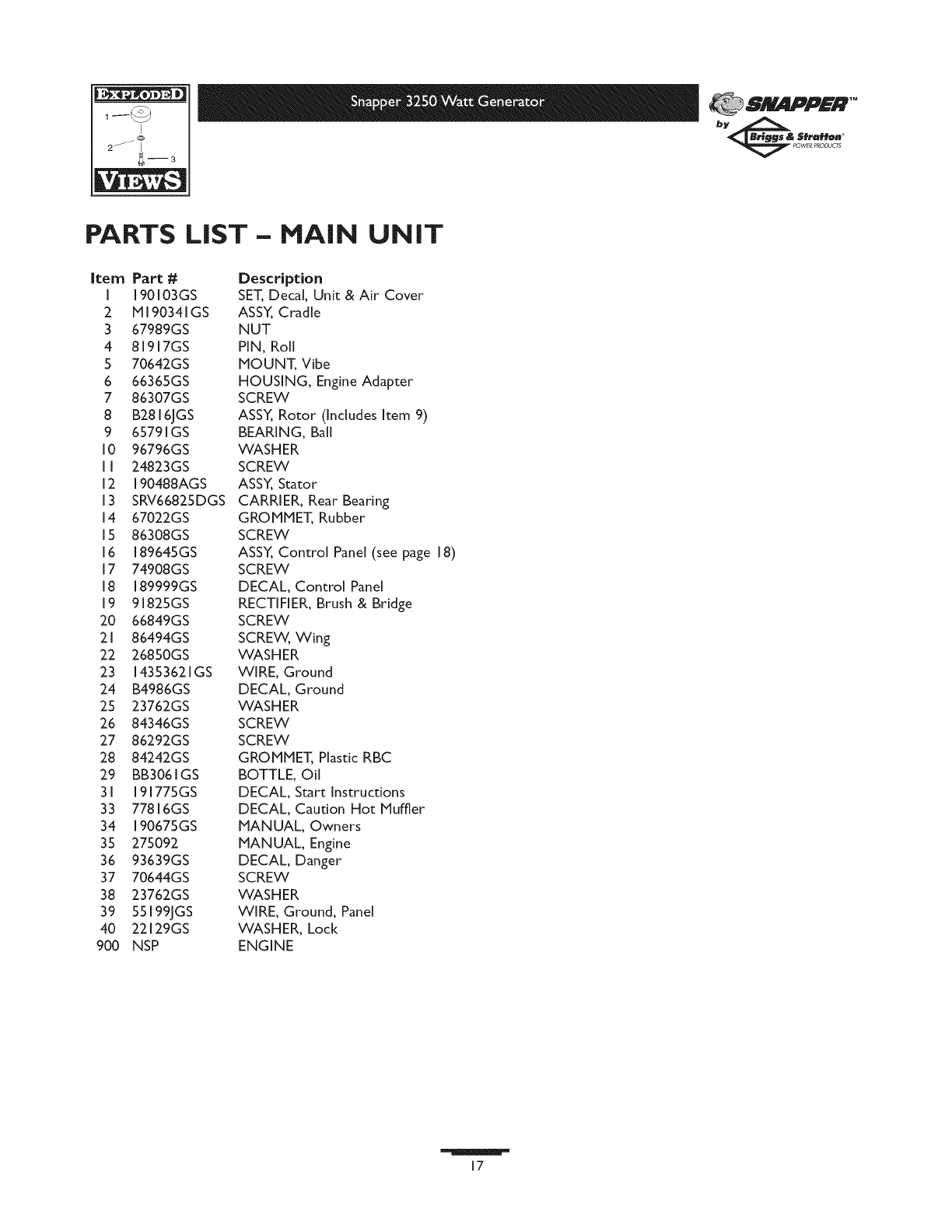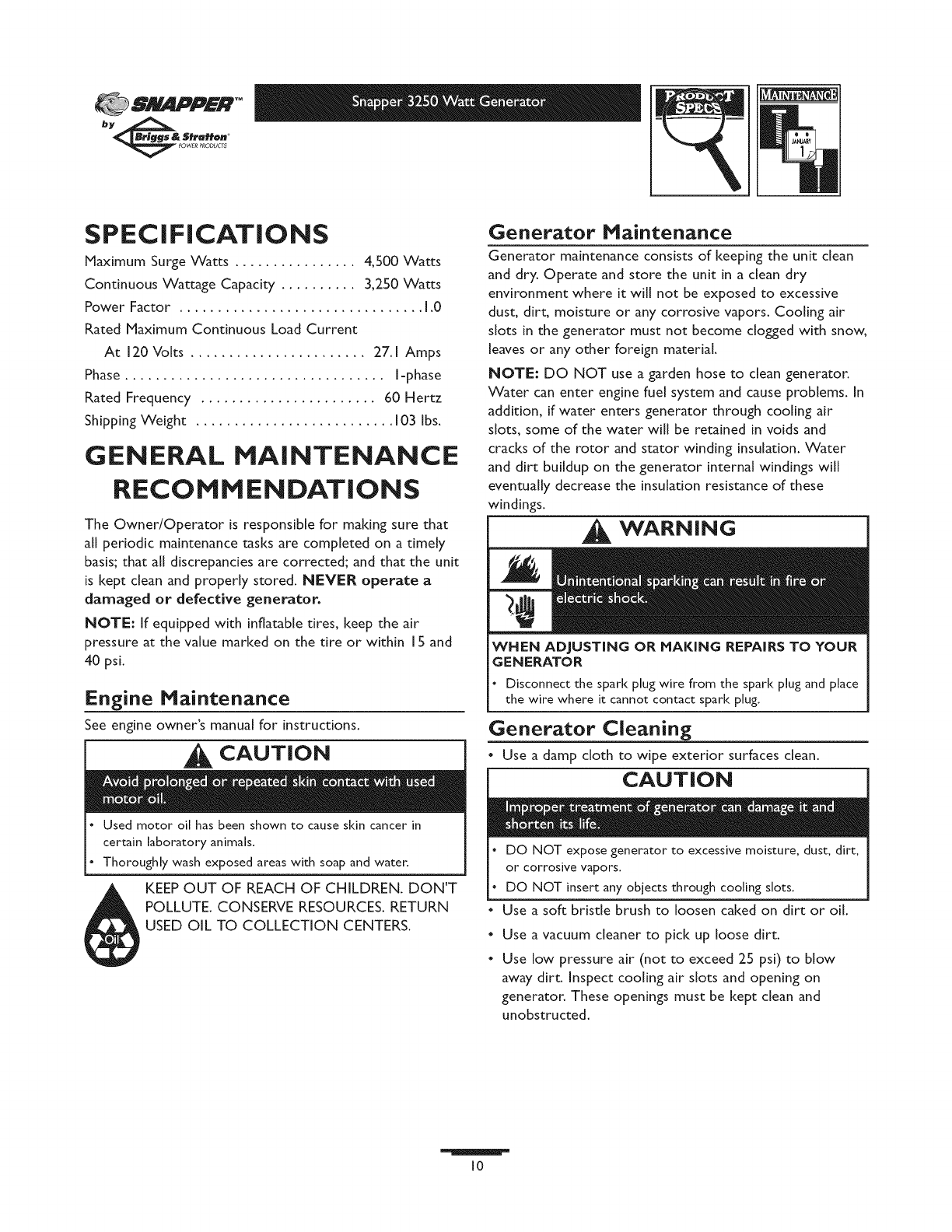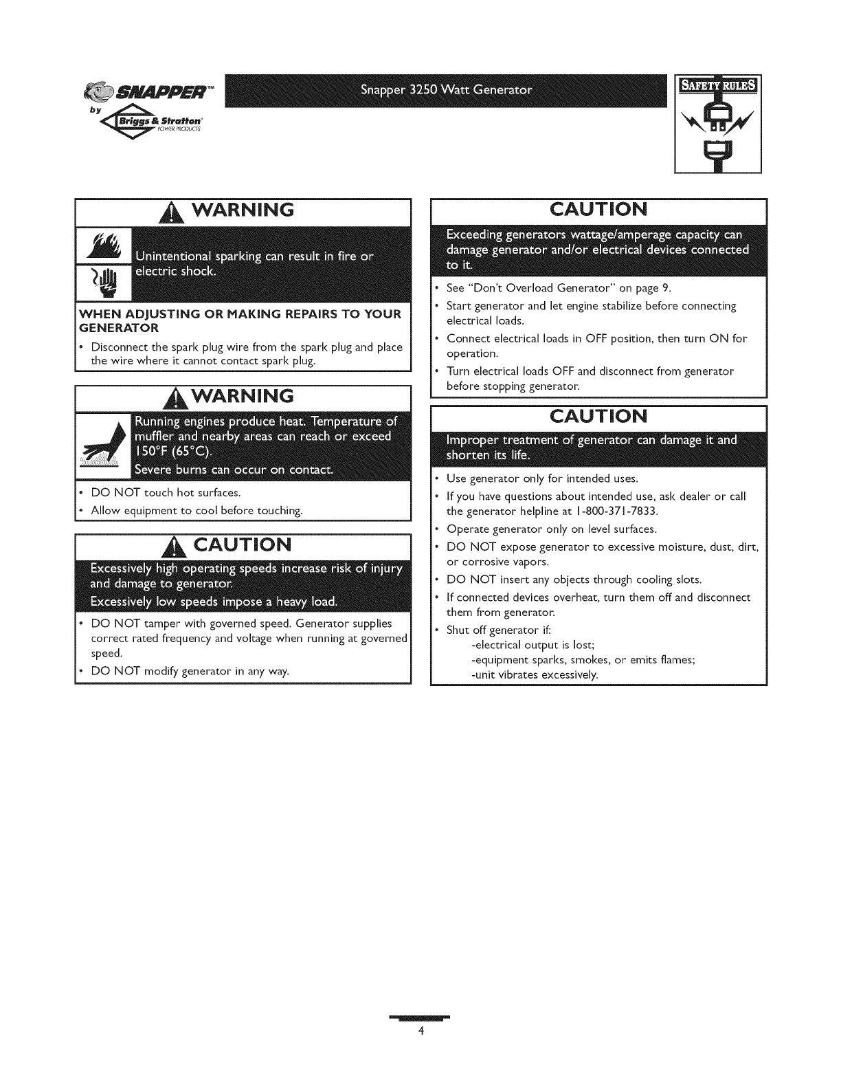 SNAPPER Generator Manual L0808313