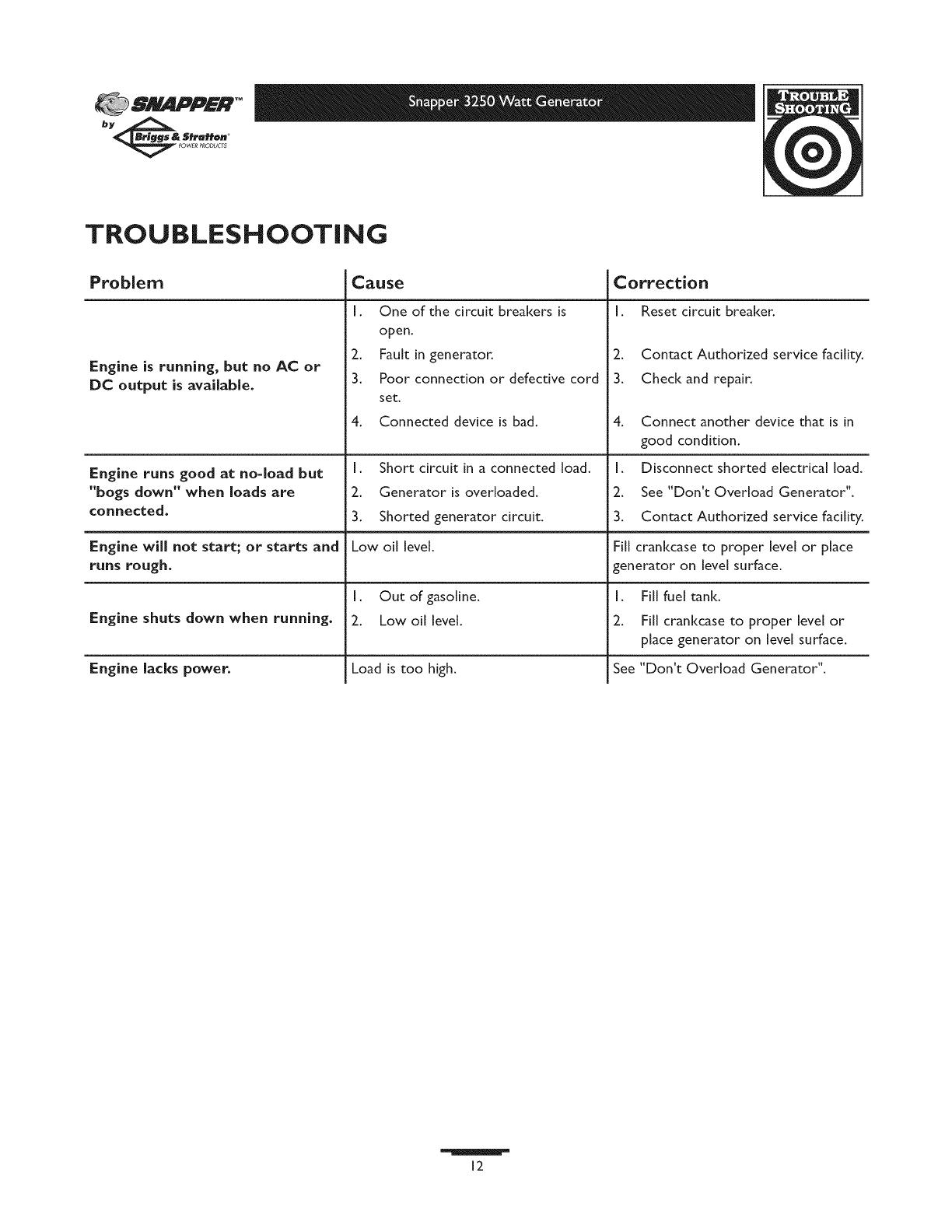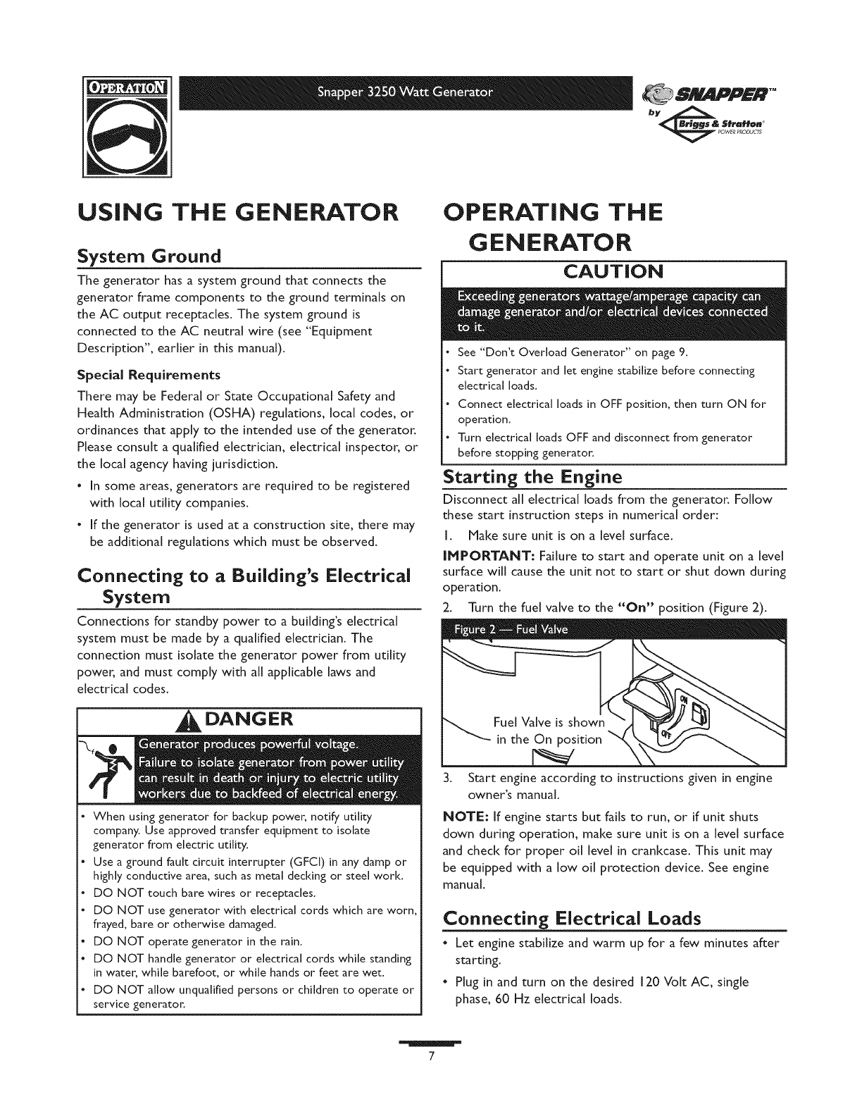 User Manual: SNAPPER SNAPPER Generator Manual SNAPPER Generator Owner's Manual, SNAPPER Generator installation guides