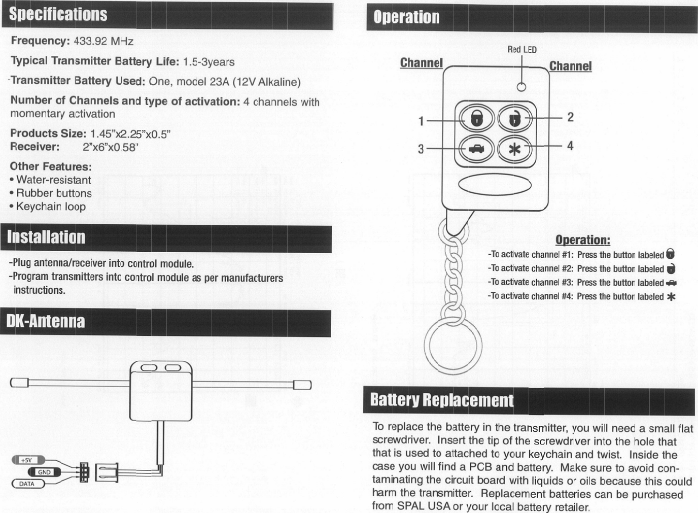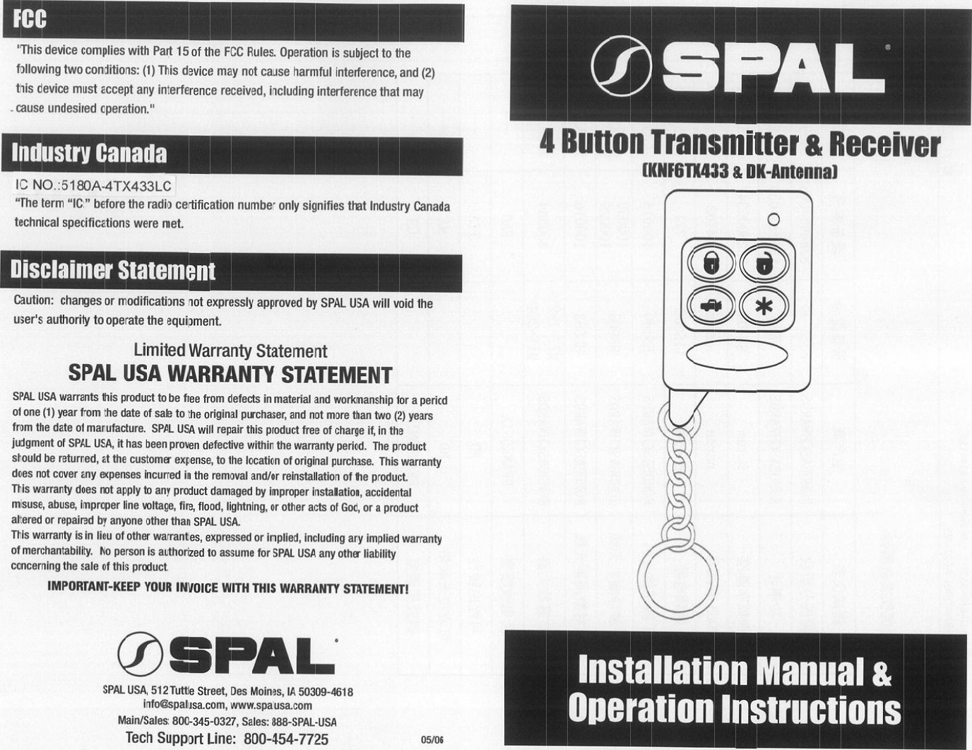 SPAL USA 4TX433LC Remote Controlller User Manual scan