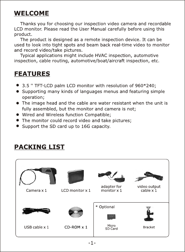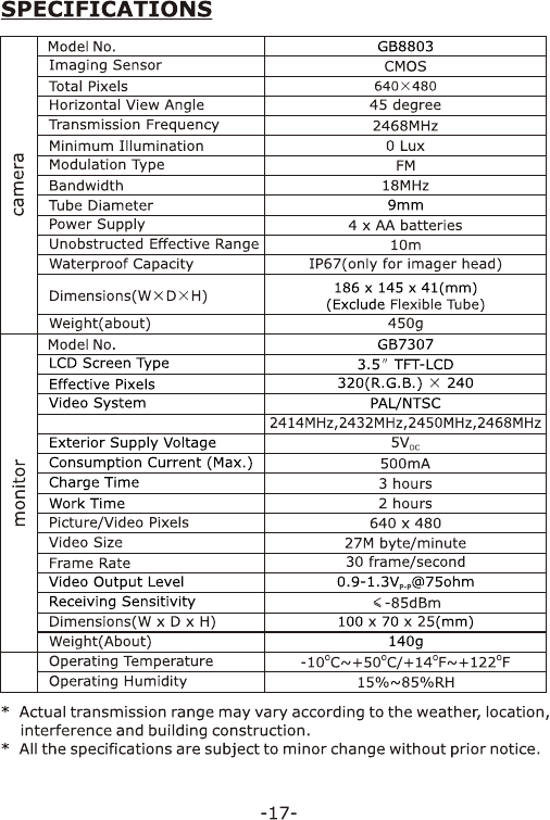SPX Service Solutions J-50079-16 Wireless Inspection Camera and Receiver User Manual 8802AL