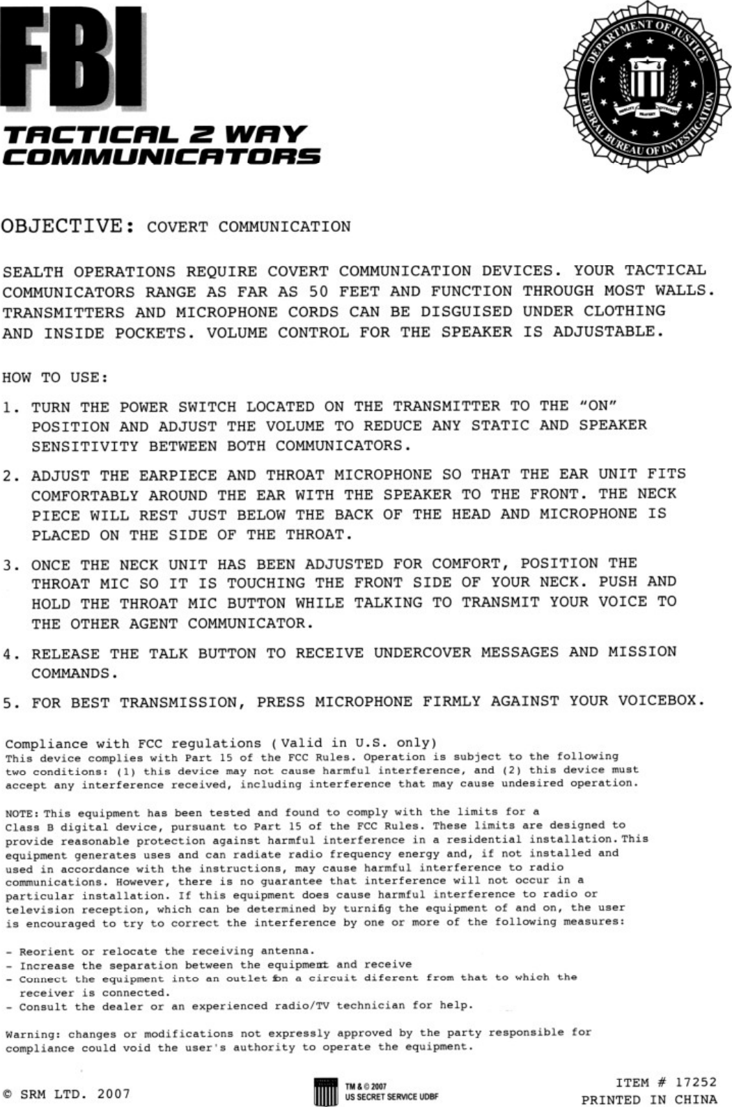 SRM Entertainment SRM17252 Voice Transmitter User Manual