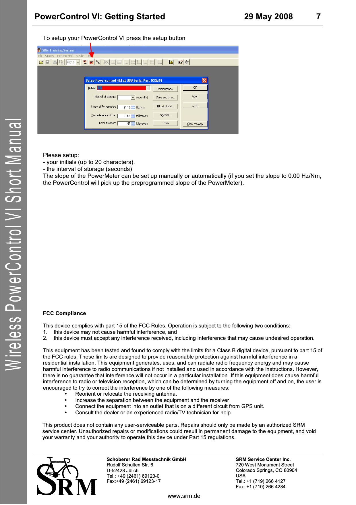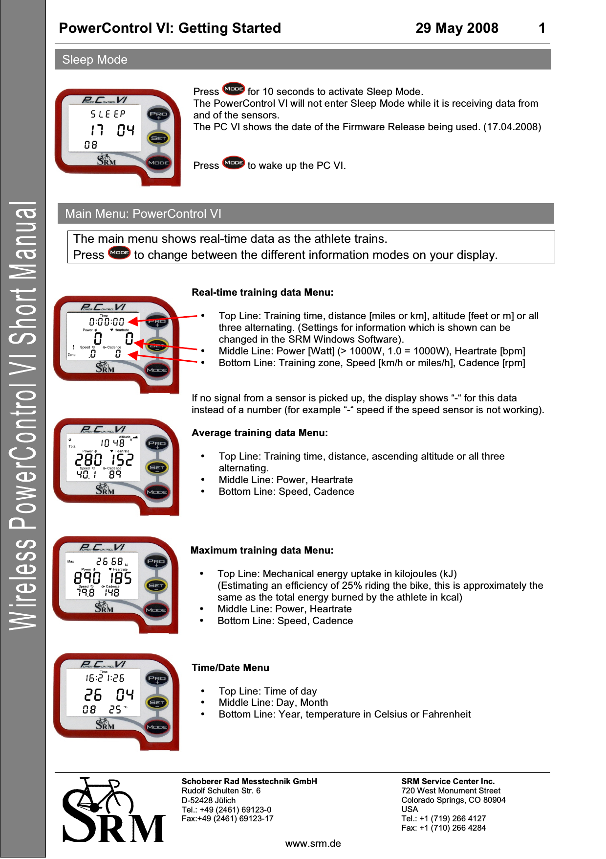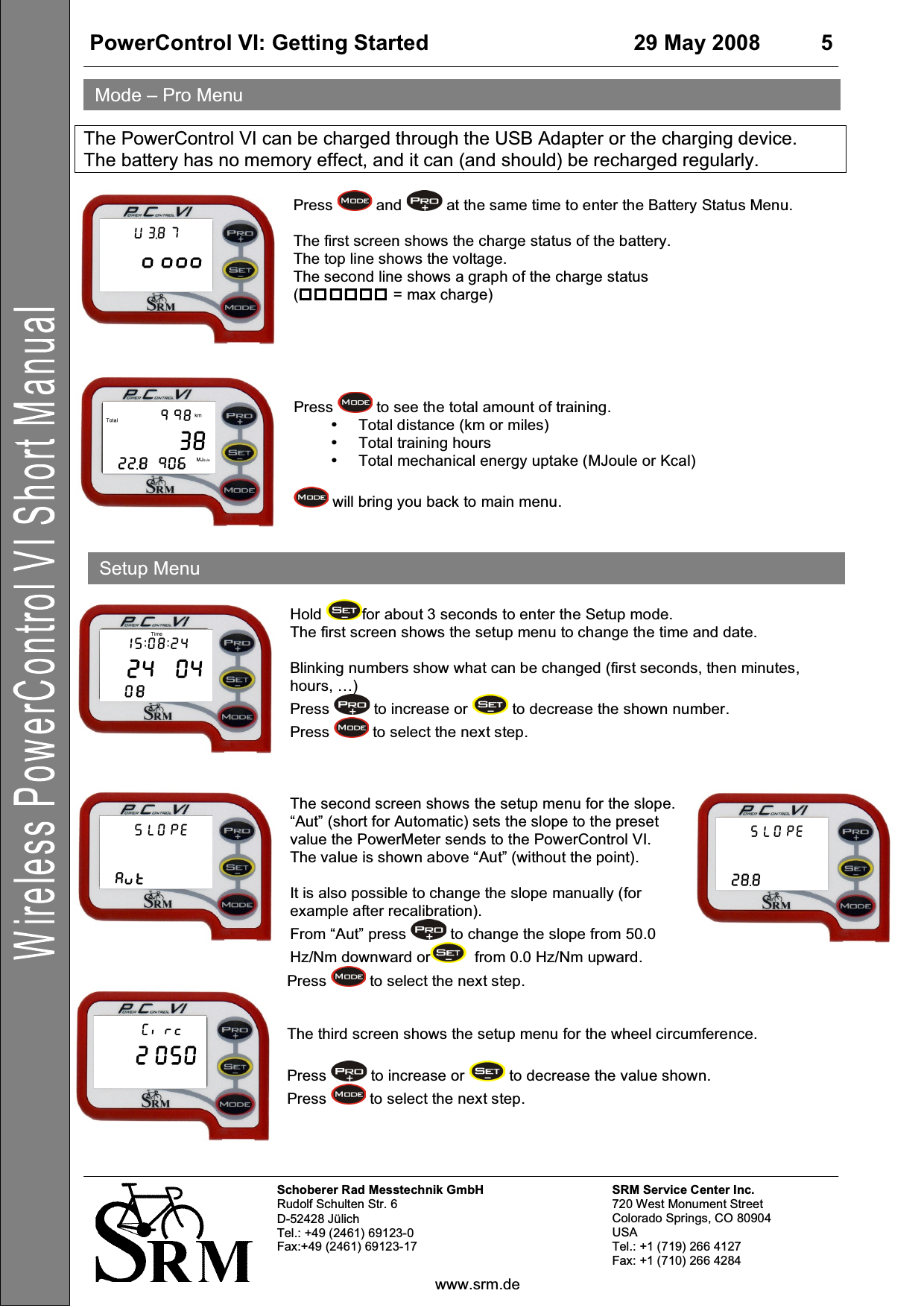 SRM Service Center PC6 PowerControl 6 User Manual quick start manual