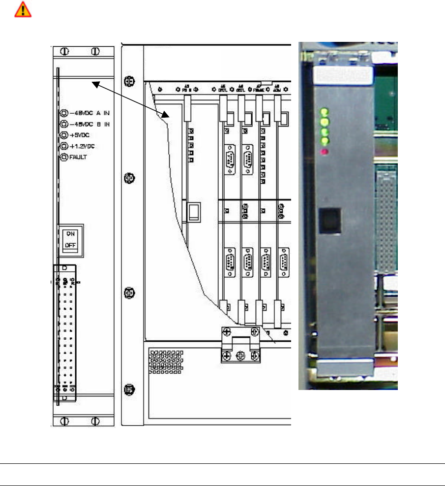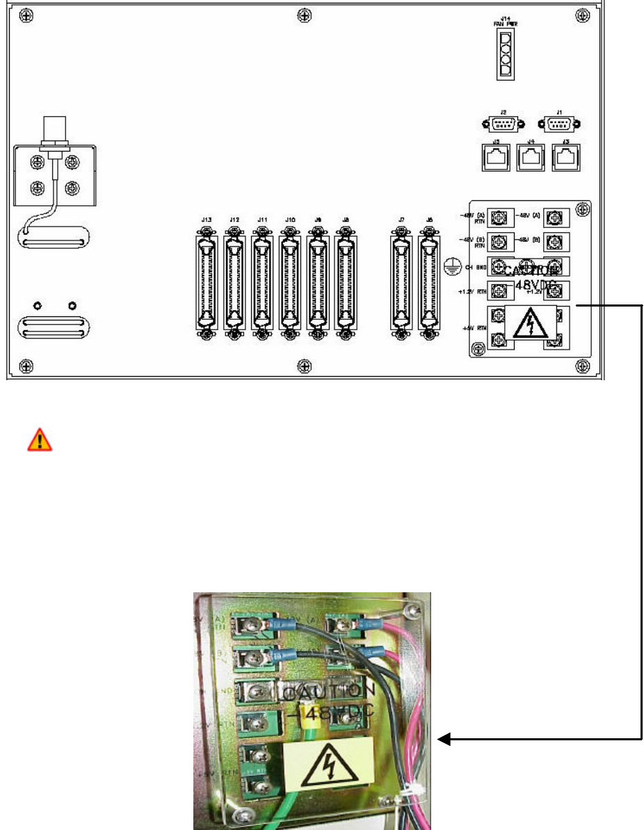entering the chassis. Dual 48V input power is provided through a protected screw terminal