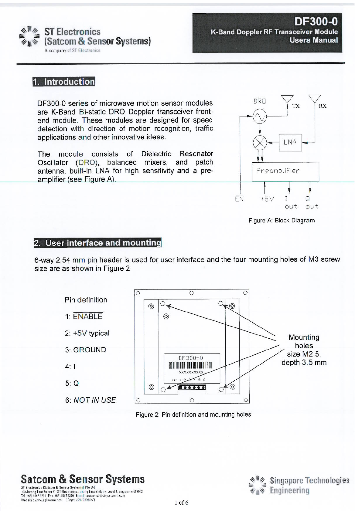 ST Electronics (Satcom & Sensor Systems) Pte Ltd Microwave Motion Sensor Module Users Manual