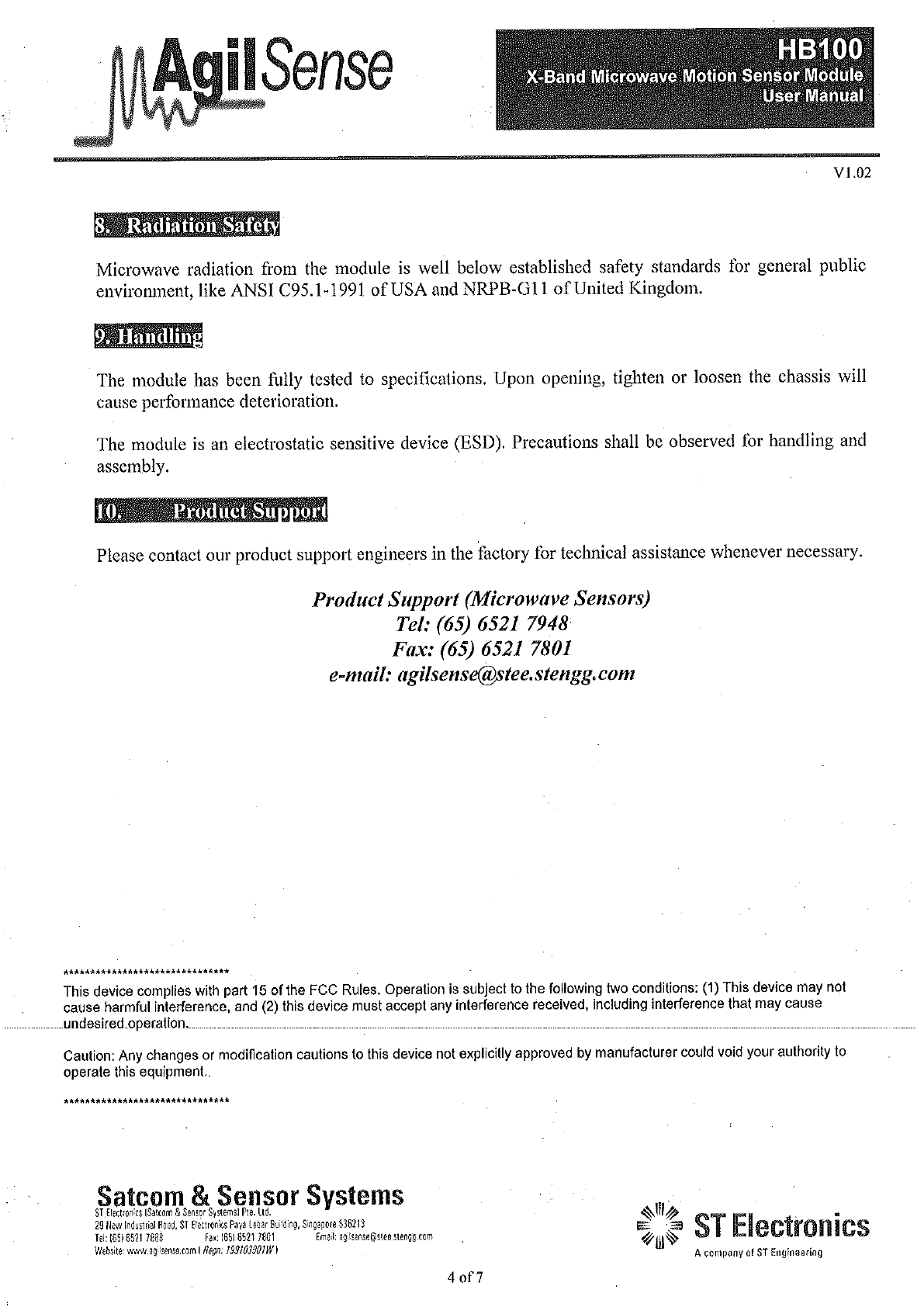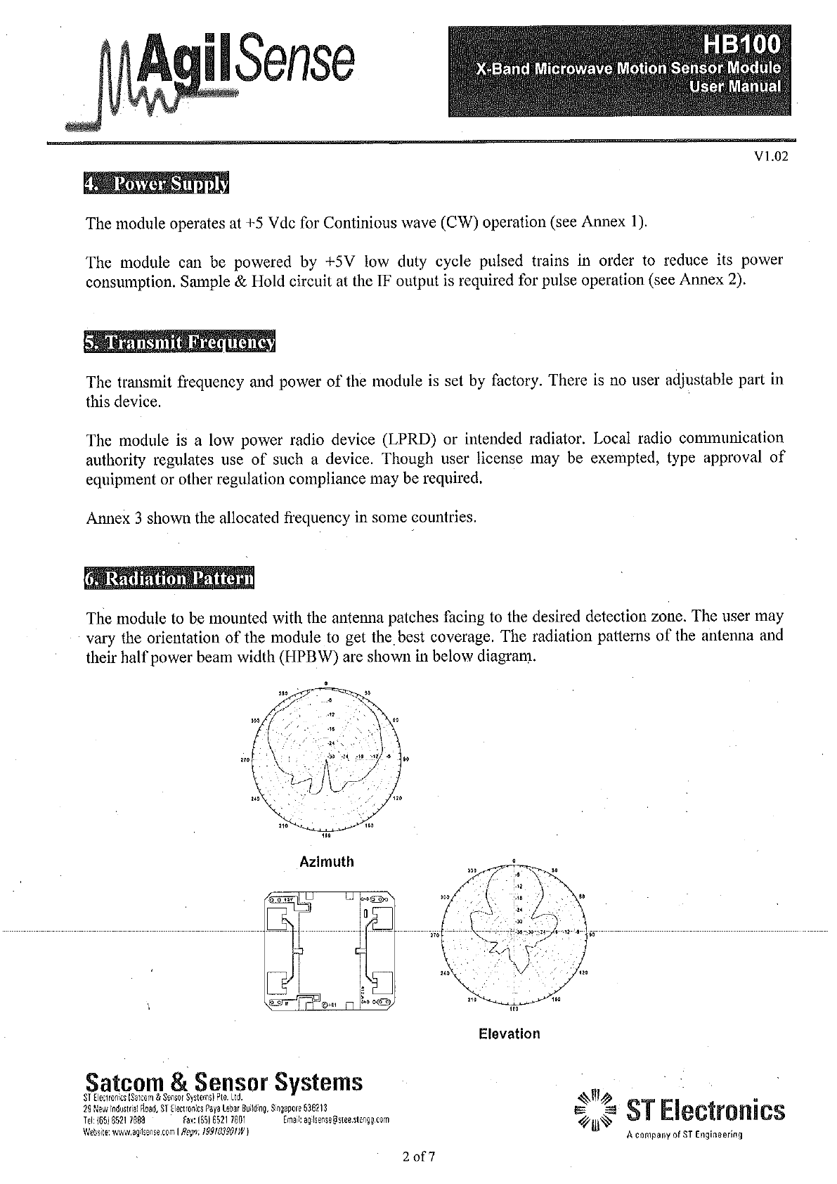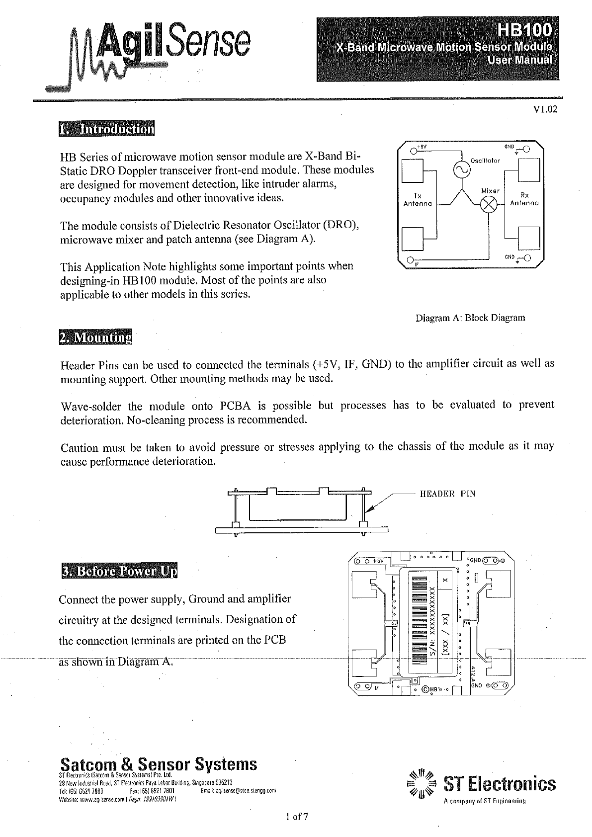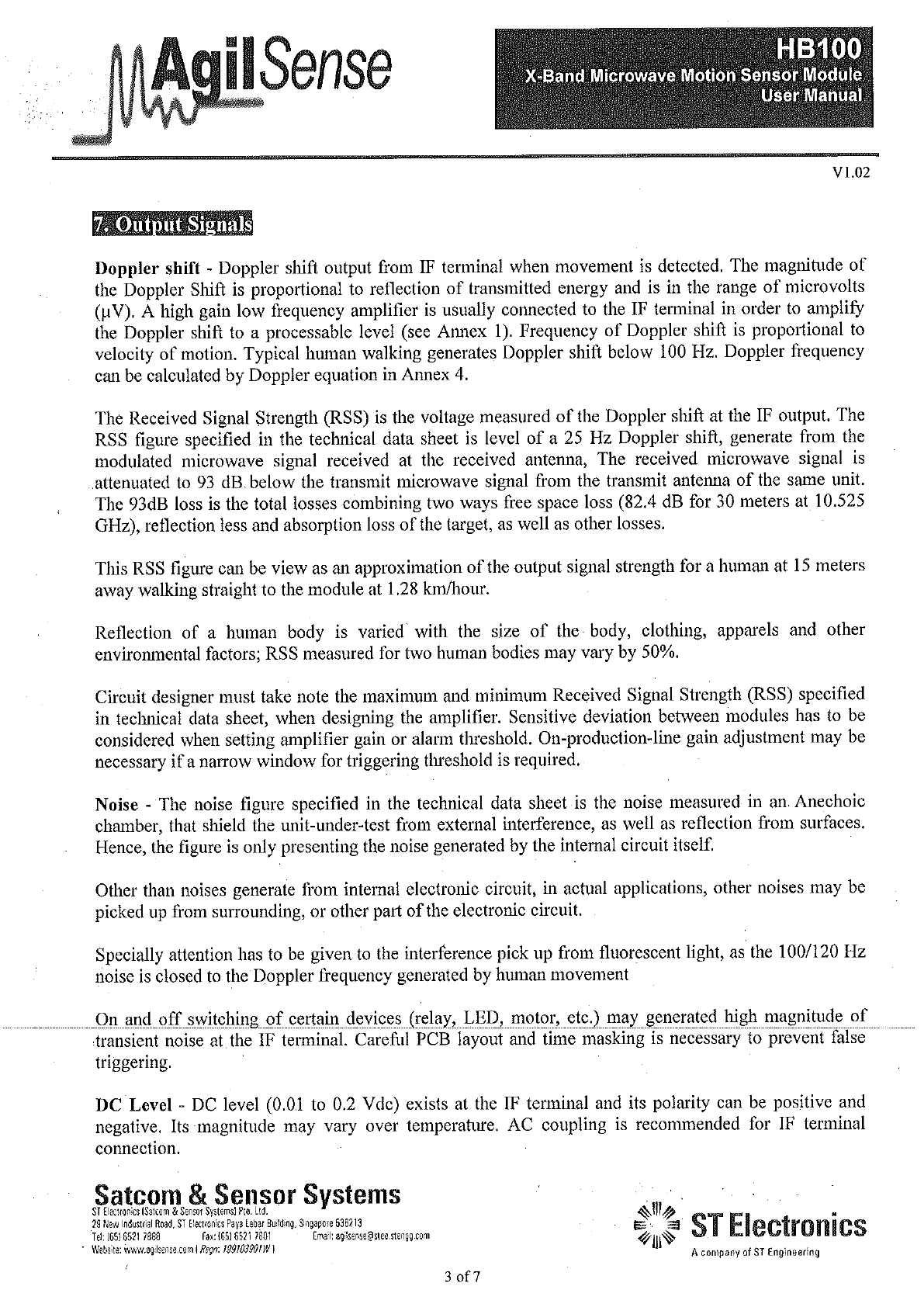 ST Electronics HB100 X-Band Microwave Motion Sensor Module User Manual