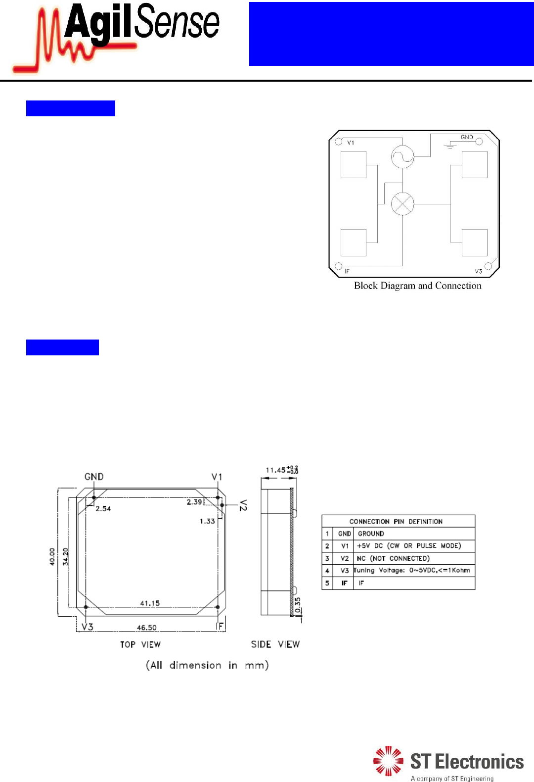 4. V3: Tuning voltage :0~5VDC, Res<=1Kohm; (See section 4);