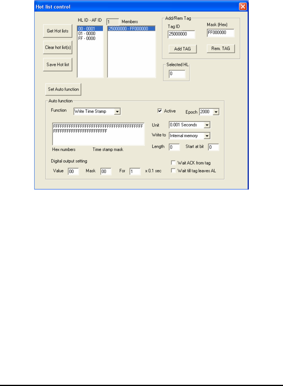 Add TAG Add a selected transponder with Mask to a selected hot list.