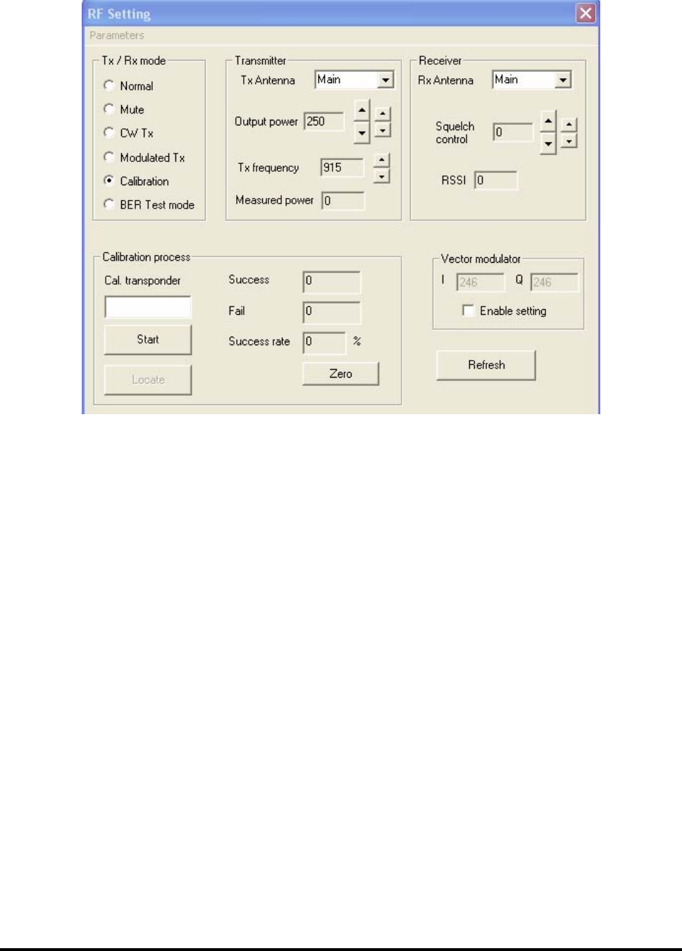 The calibration process section of the RF setting window is open when calibration Tx mode is