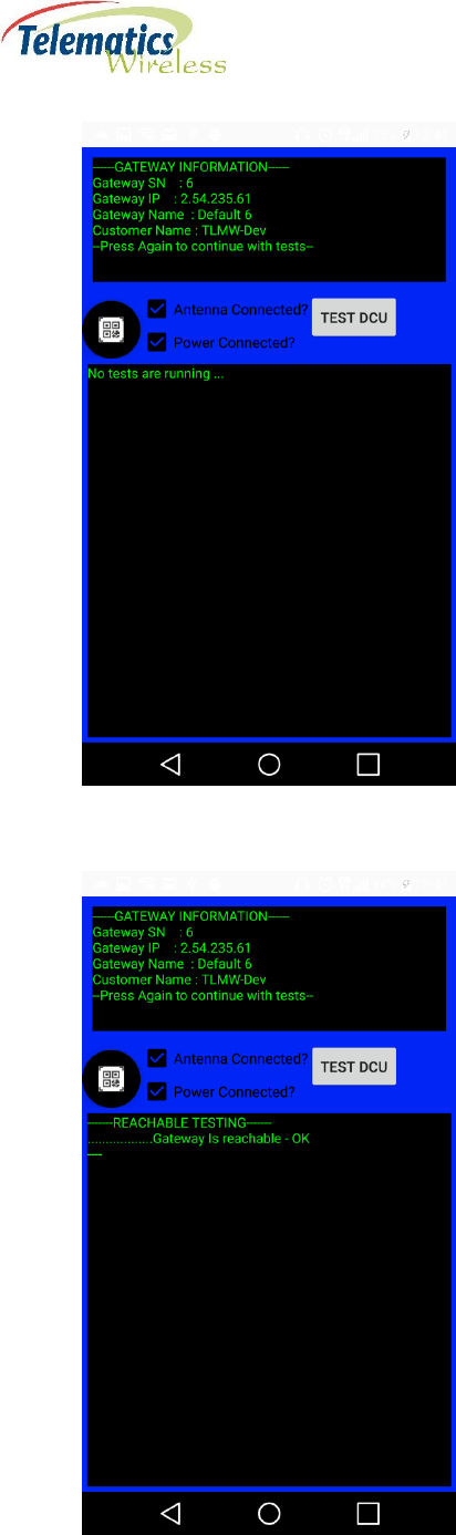 13. Using the Android smartphone with the Telematics DCU Checkup app installed: