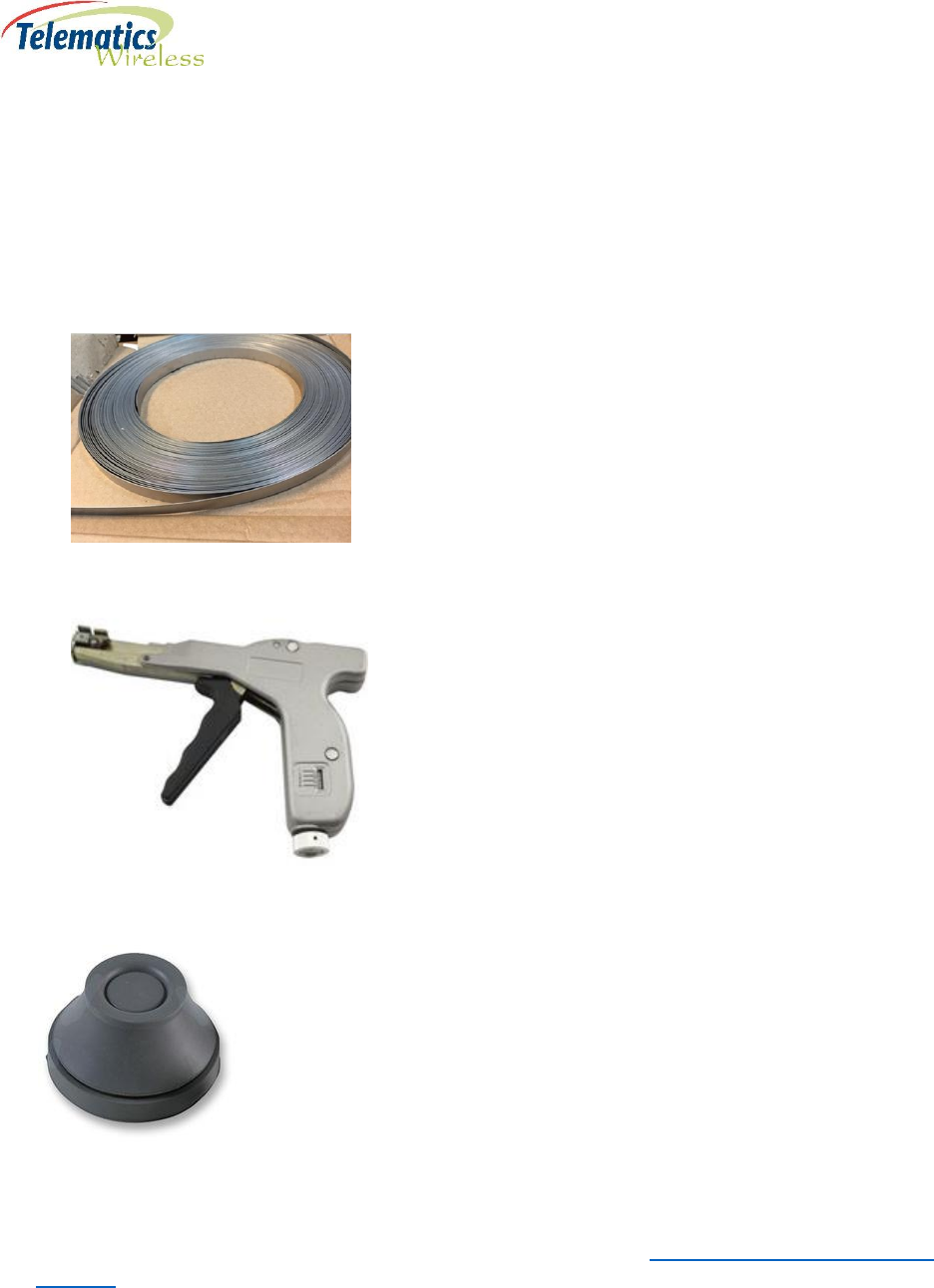 4. Tighten the steel tape around the light pole using the tensioning tool in order to secure the