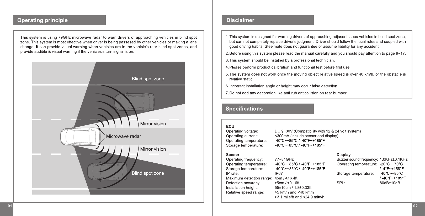 STEELMATE BSE151 Microwave Blind Spot Detection System User Manual Q6WBSE151 User Manual
