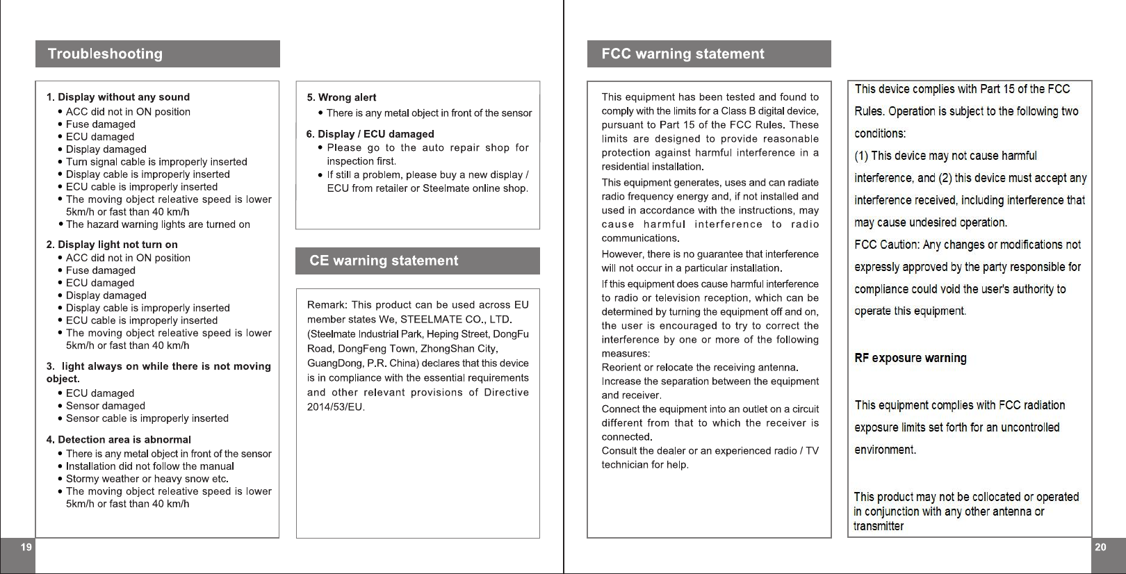 STEELMATE CO., LTD. Microwave Blind Spot Detection System Q6WBSE151 User Manual