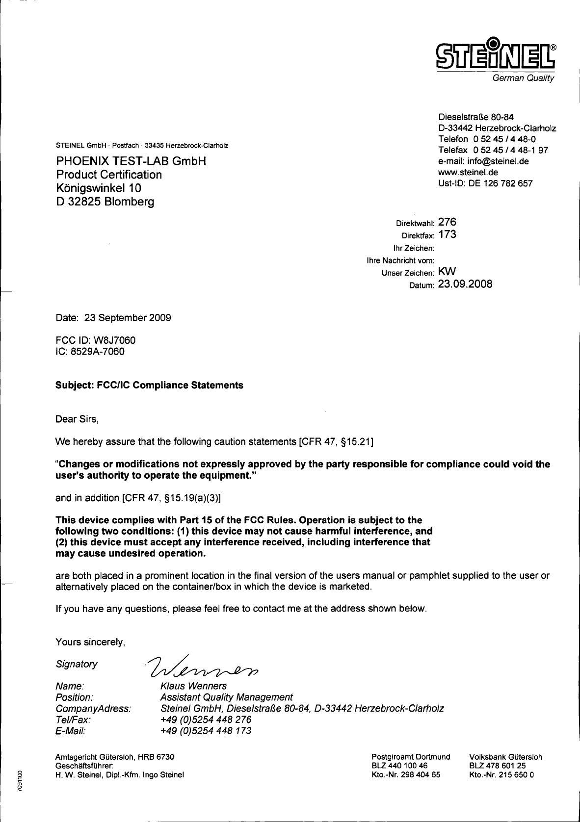 STEINEL GmbH. Postfach. 33435 Herzebrock-Clarholz