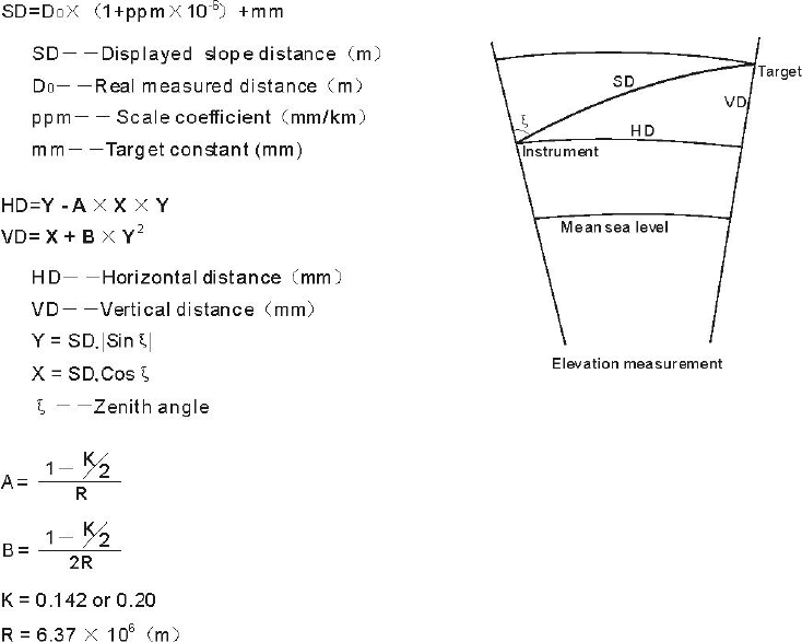 ◆ The factory setting for the refraction coefficient K is 0.142.
