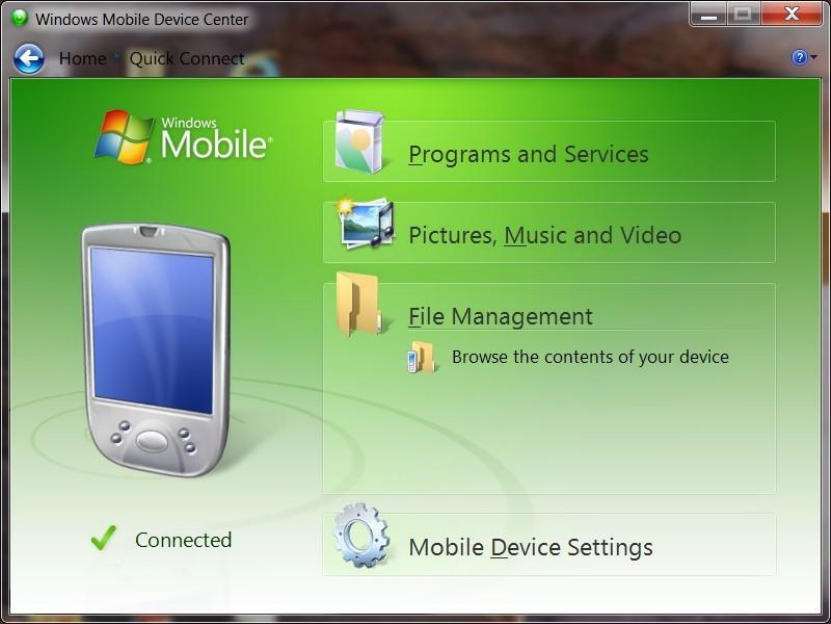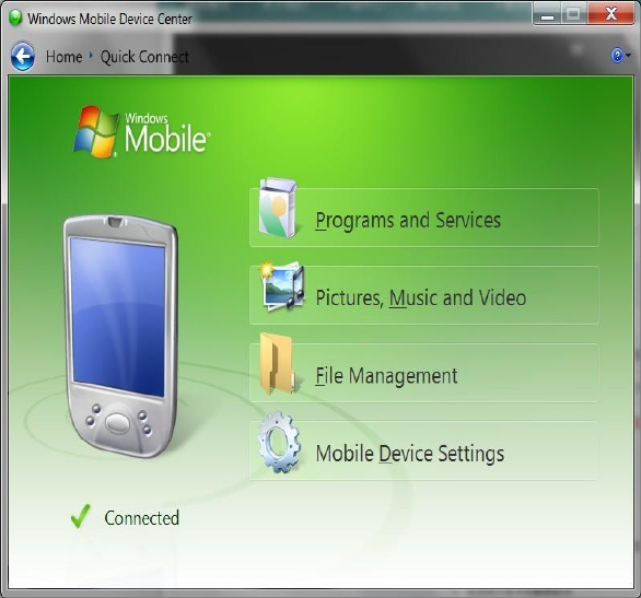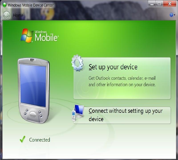 3.2.1 Managing the Connection and Synchronization Using the Windows Mobile Device