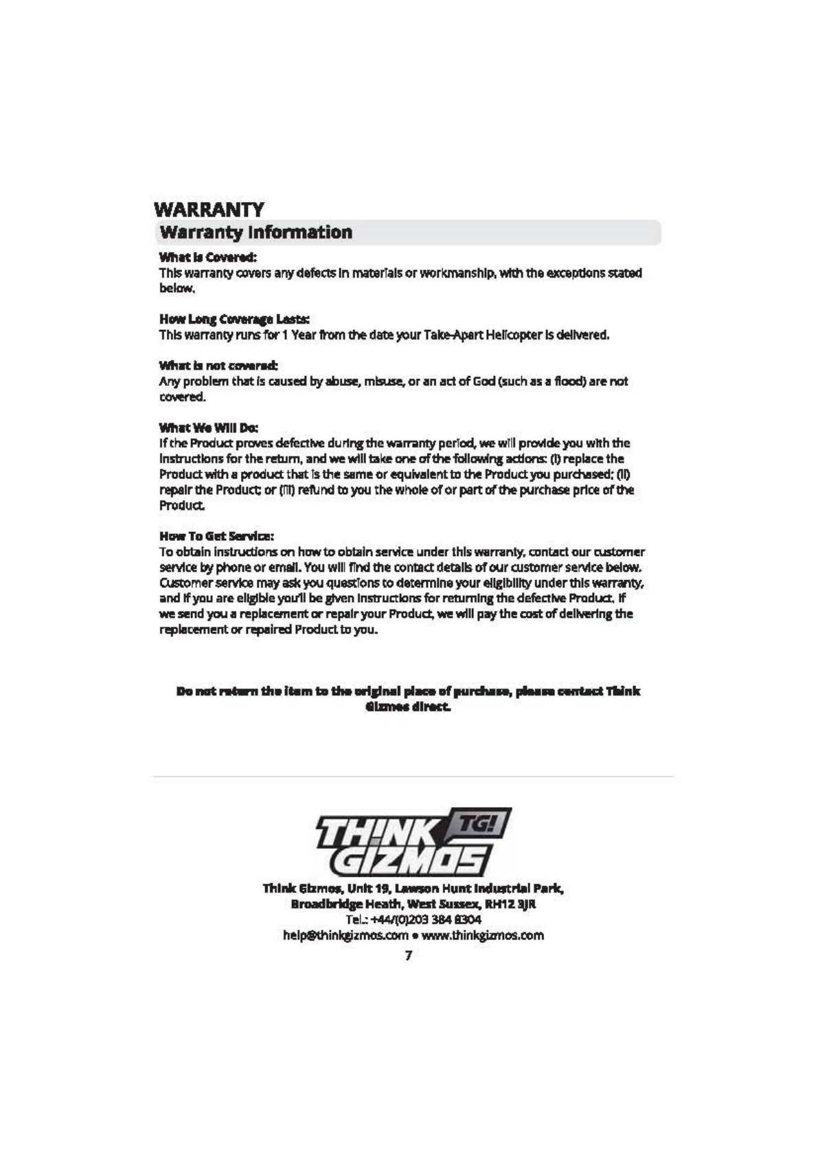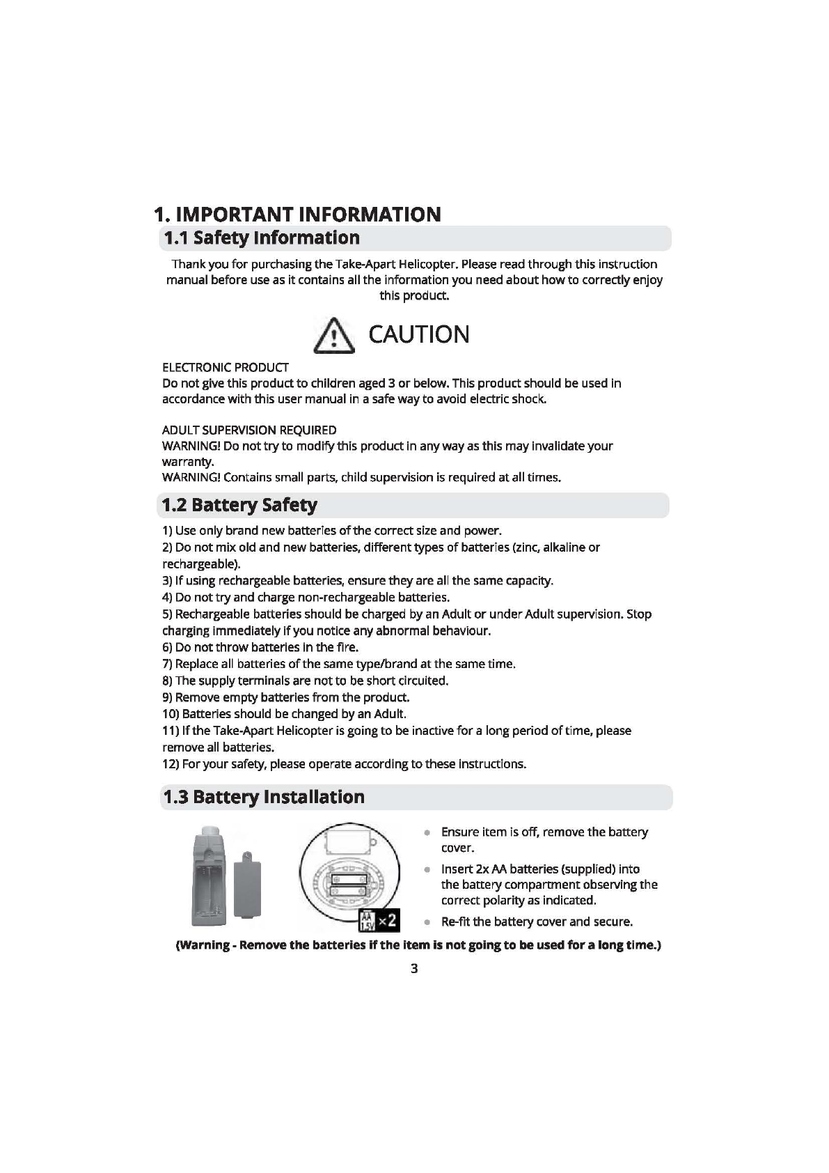 STORMFORWARD RETAIL TG711 Remote control of Take Apart Mission Helicopter User Manual