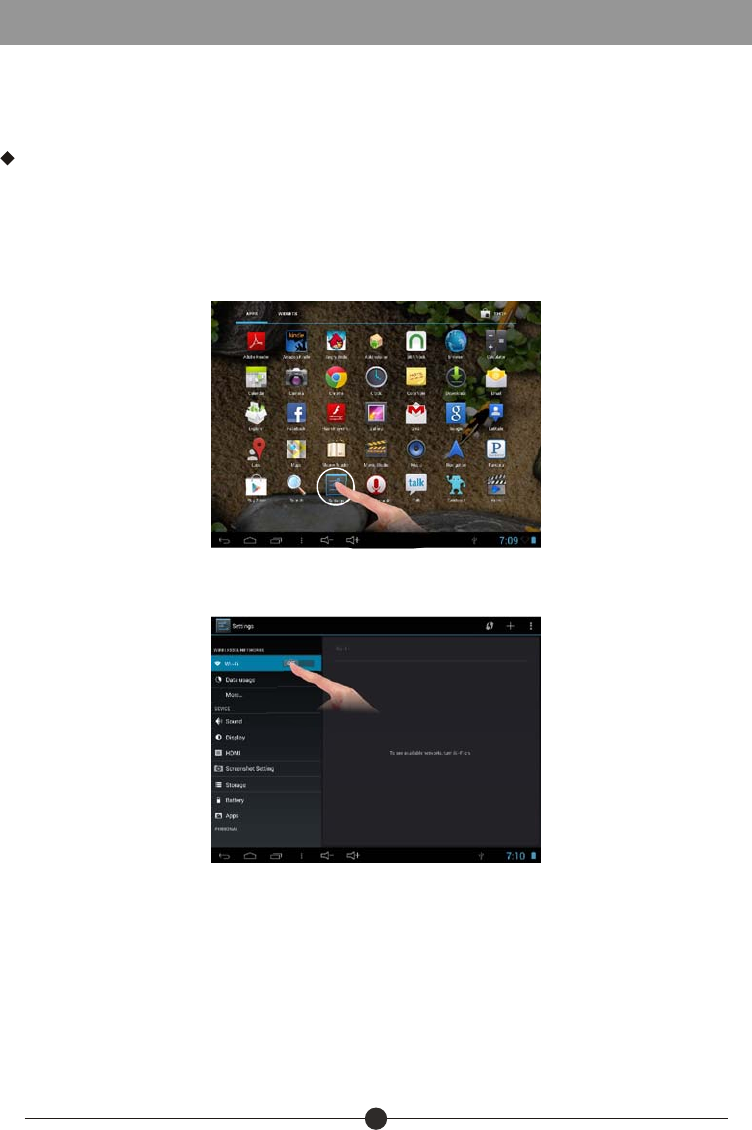 To clear App history data that have been made on your Tablet, go to “Settings”