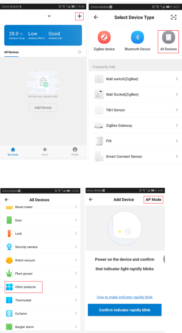 Step1:Opentheeco4lifeApp,click”+”,Select”Alldevices”thenselect”otherdevices”