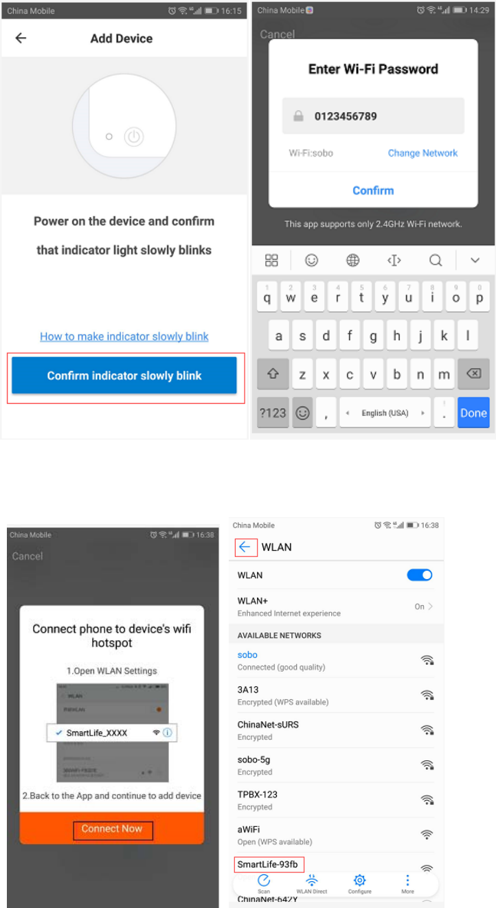 Makesuretheindicatorlightisslowlyblinking,andclick“Confirmindicatorslowlyblink”