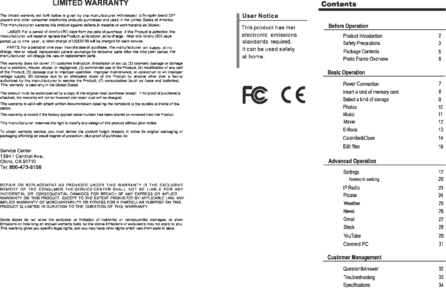 SUNGALE ELECTRONICS DPFID83571215 digital photo frame User Manual