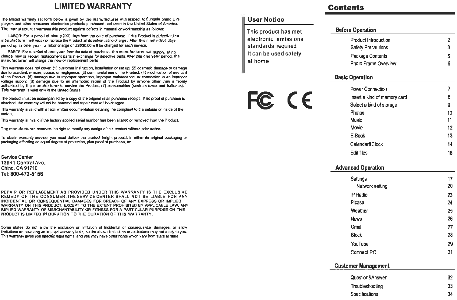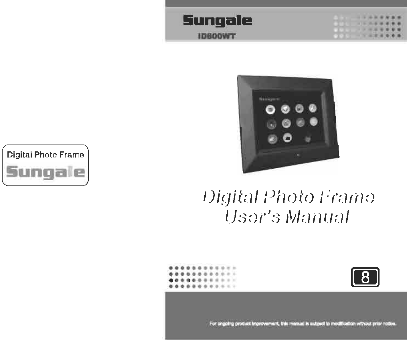 SUNGALE ELECTRONICS DPFID83571215 digital photo frame User Manual