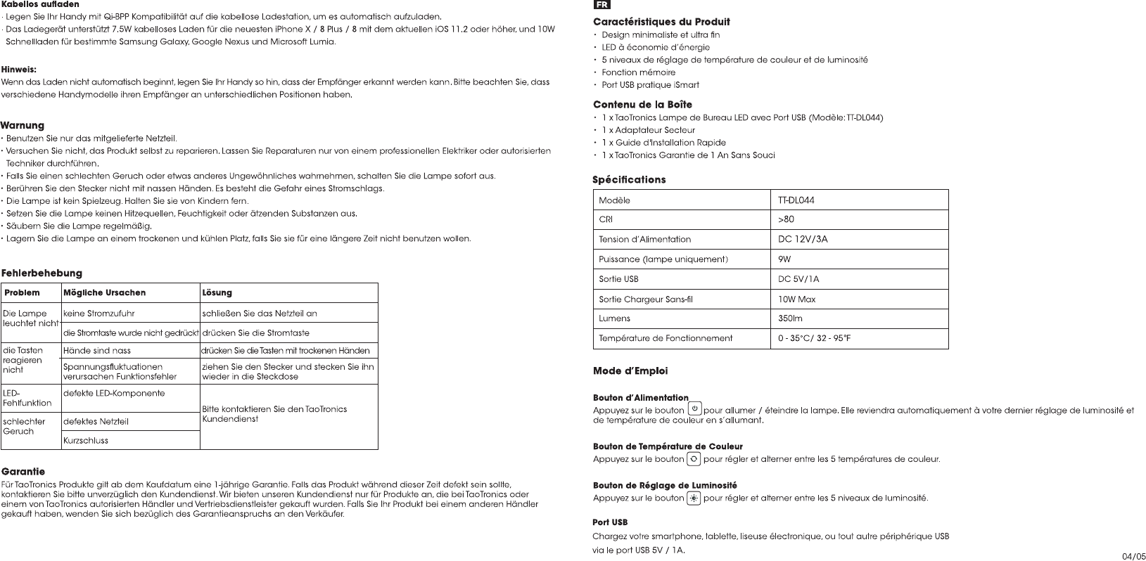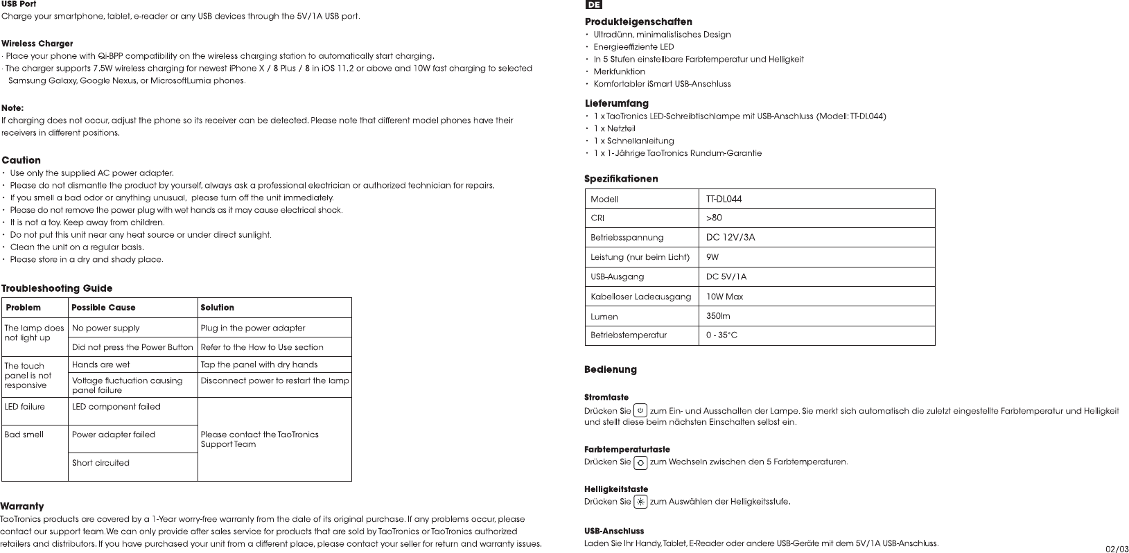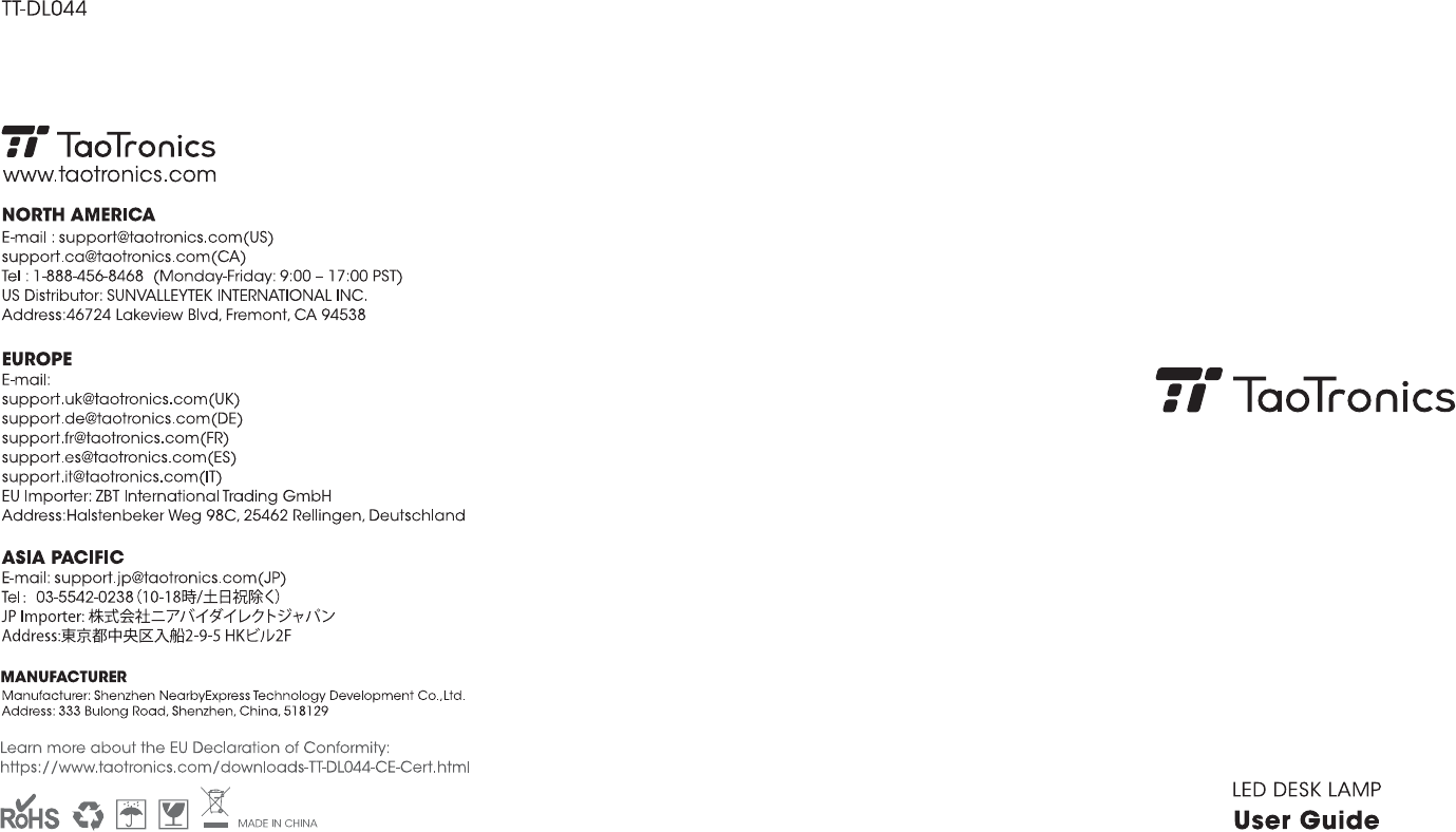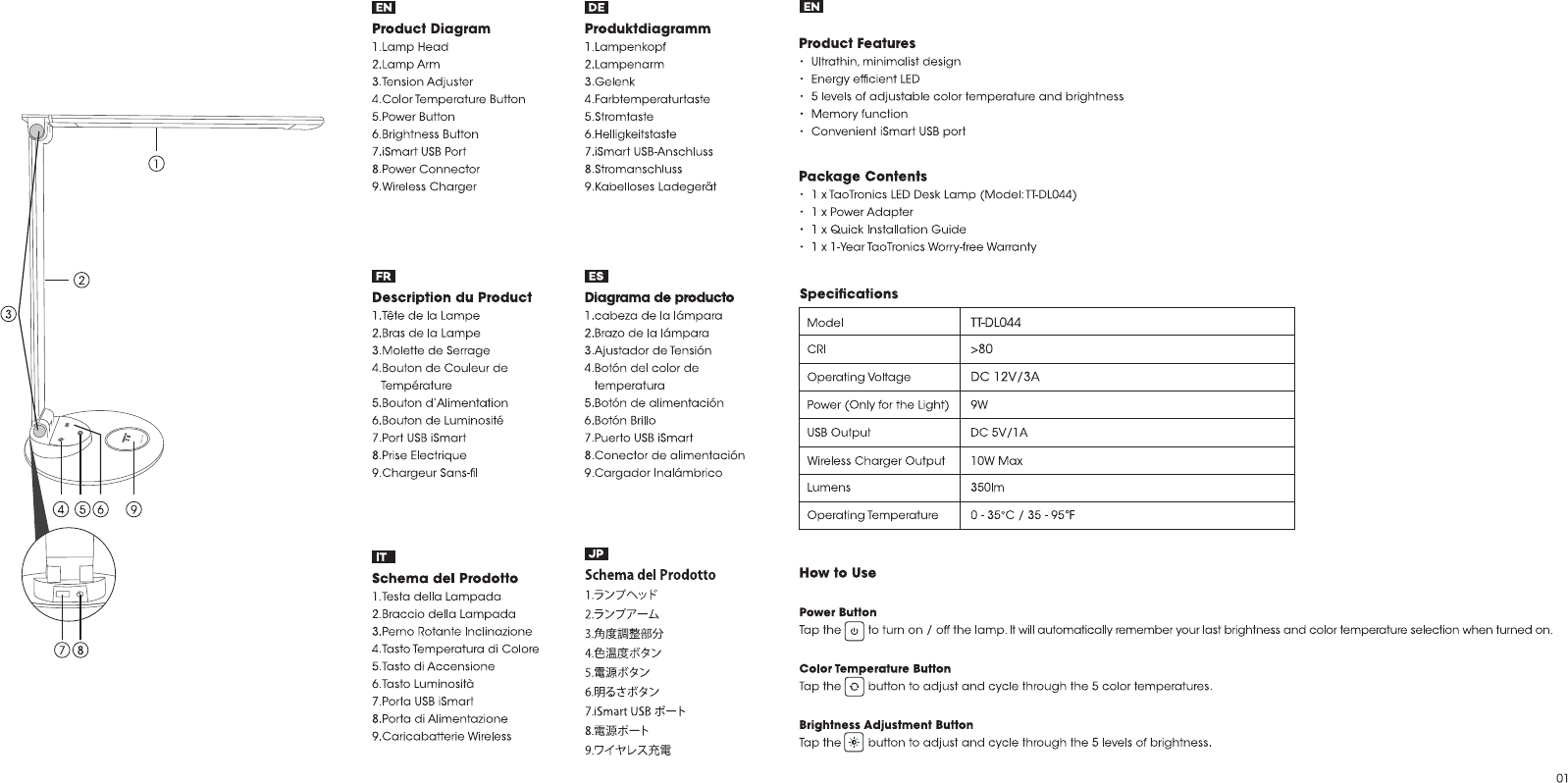 SUNVALLEYTEK TT-DL044 LED DESK LAMP User Manual
