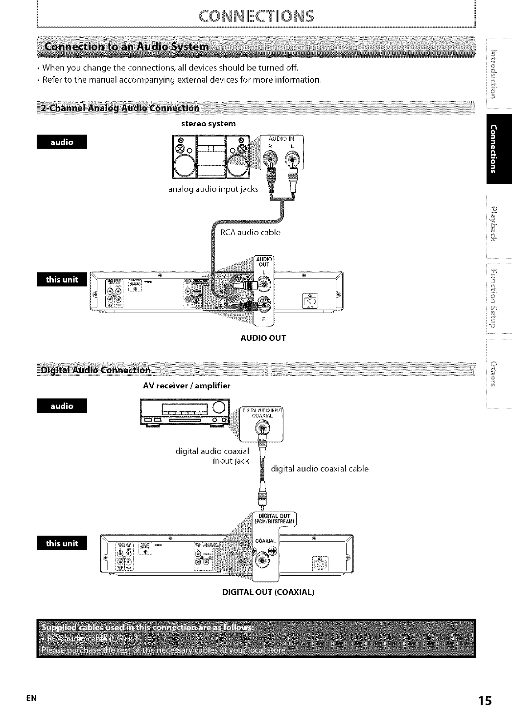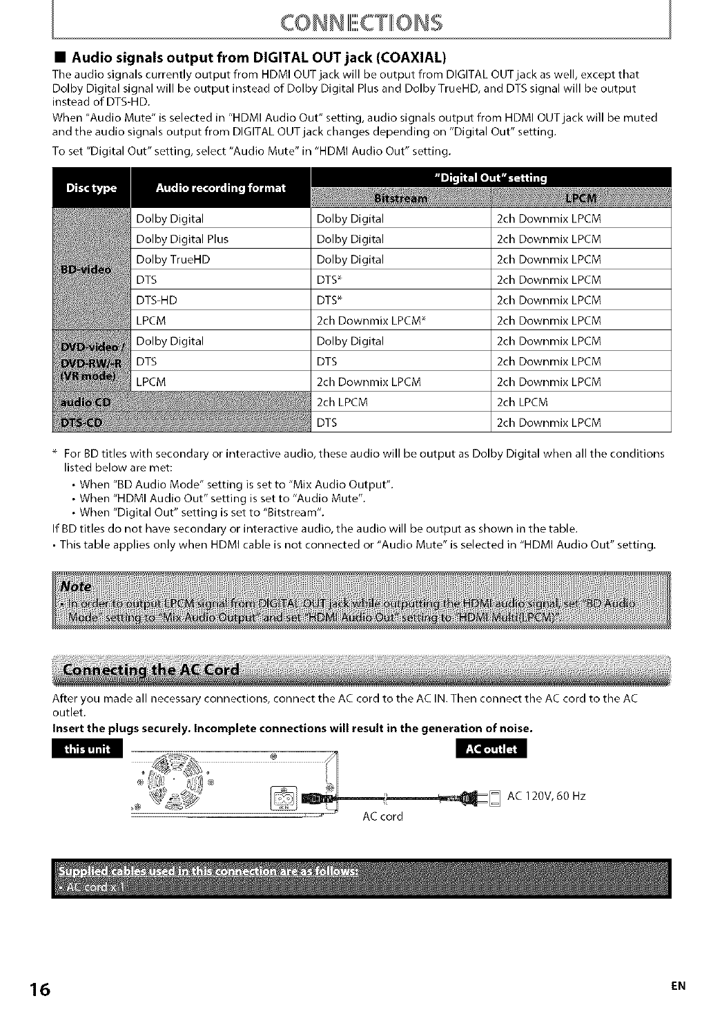 Insert the plugs securely. Incomplete connections will result in the generation of noise.