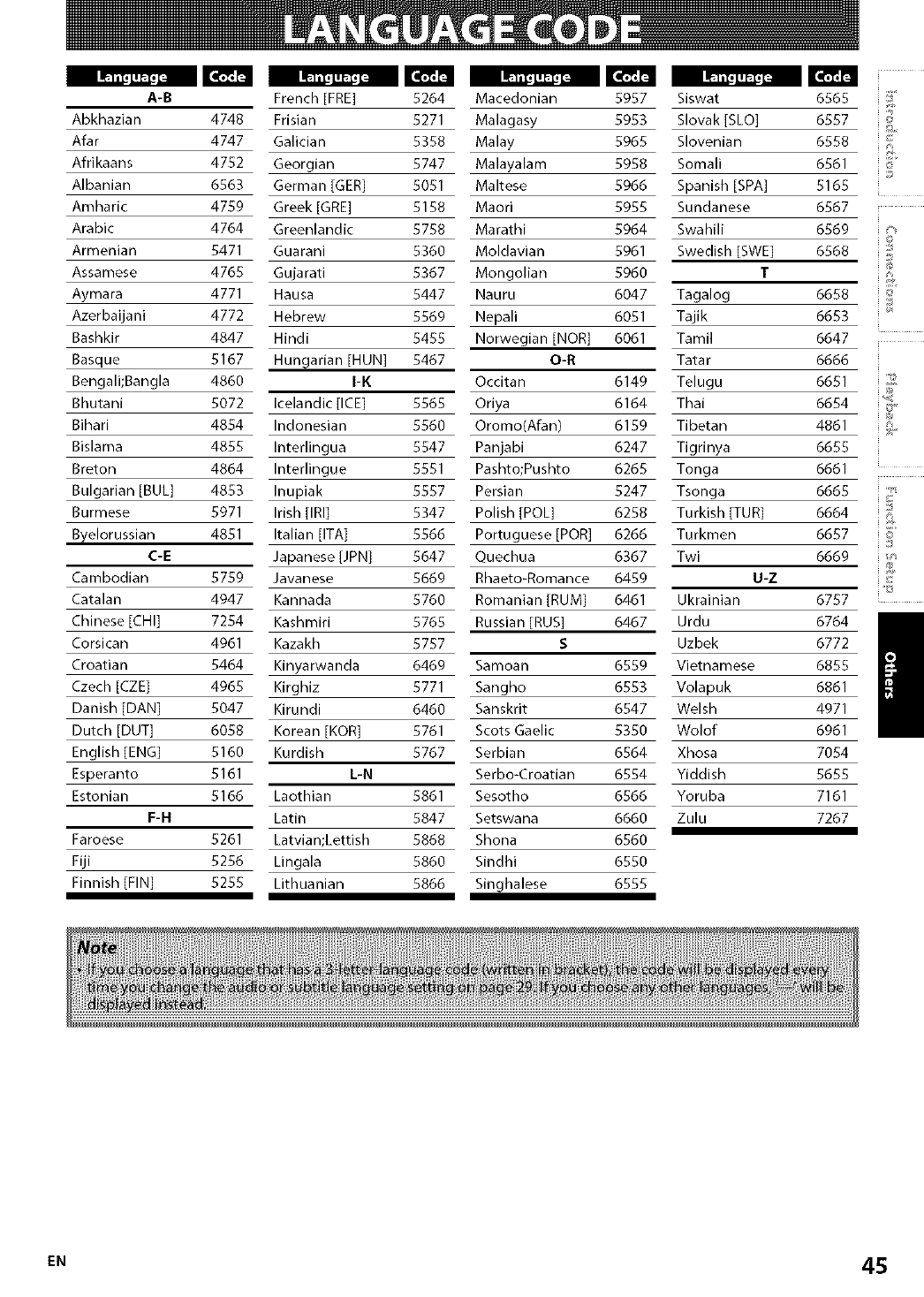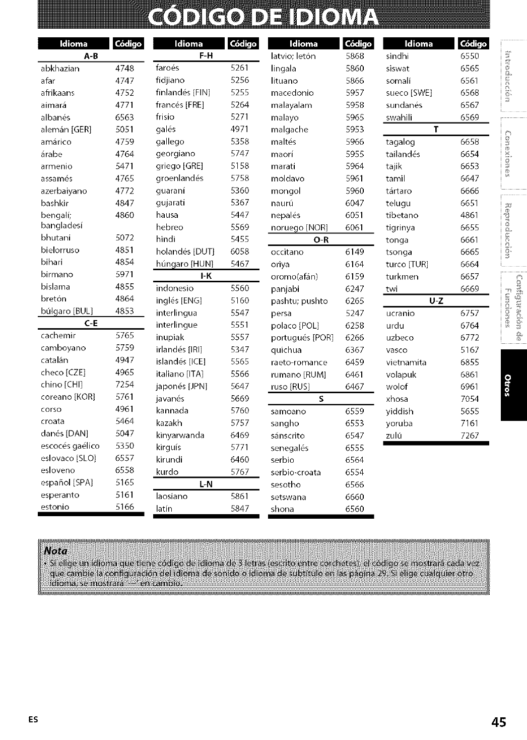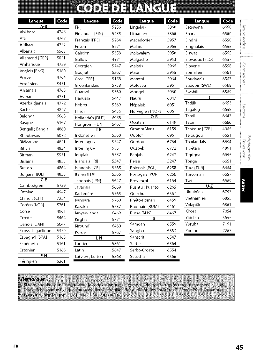 Cambodgien 5759 Javanais 5669 Pushtu ; Pushto 6265 U-Z --