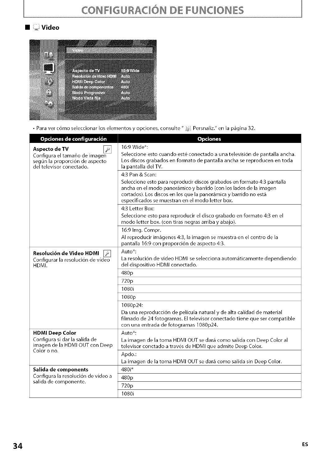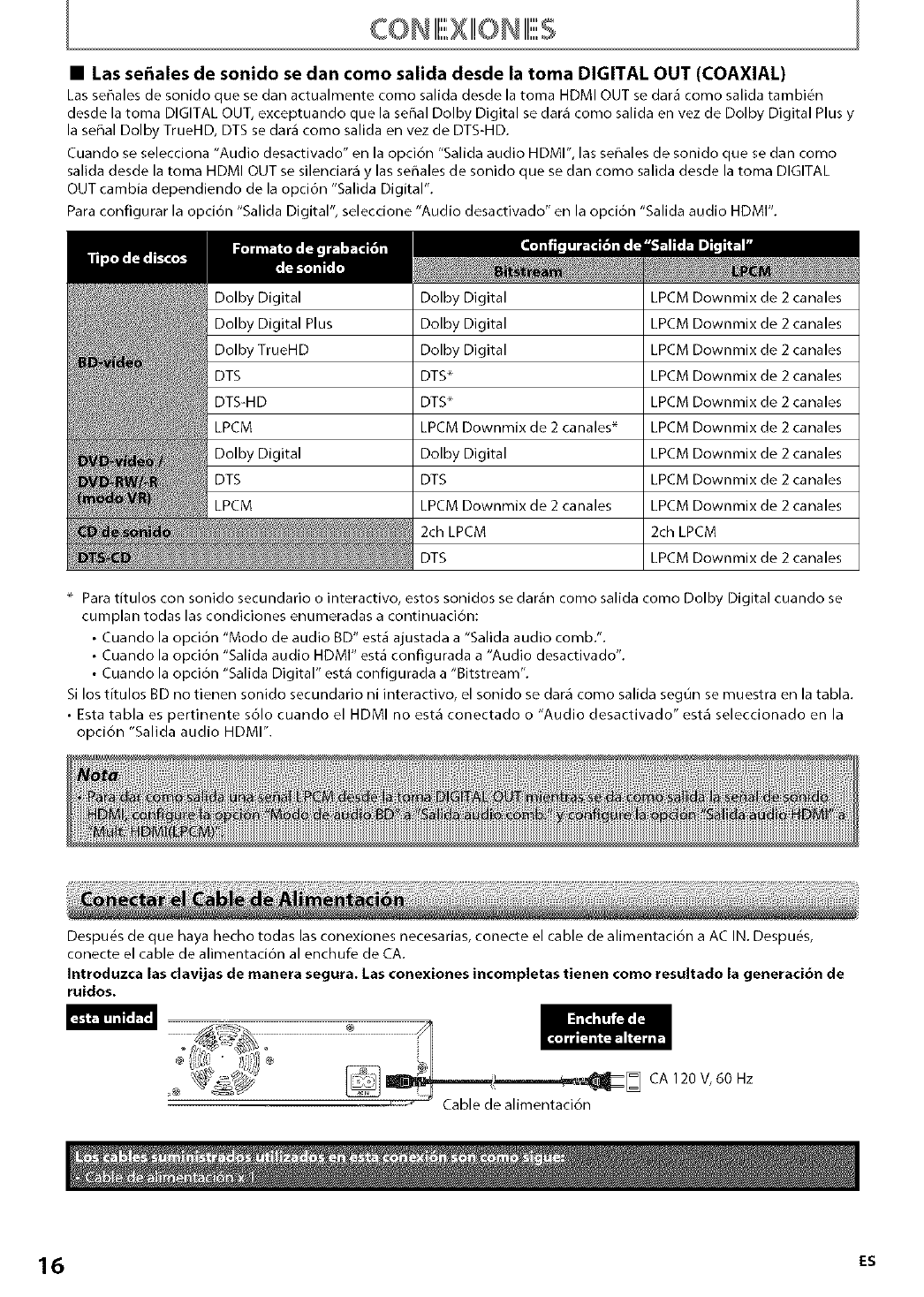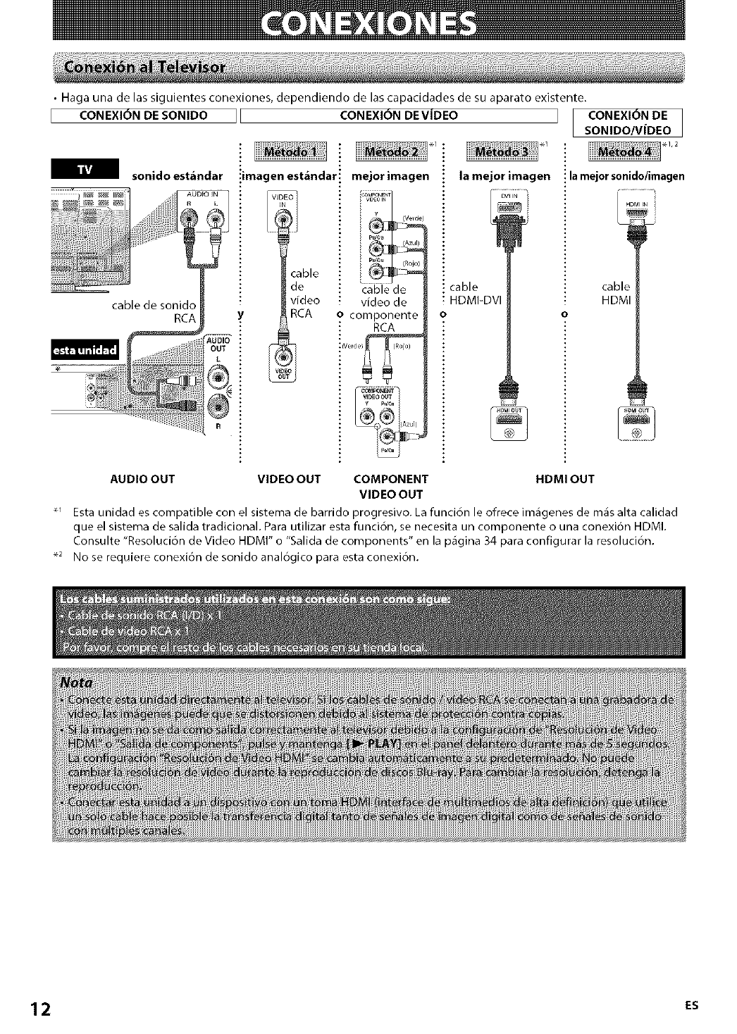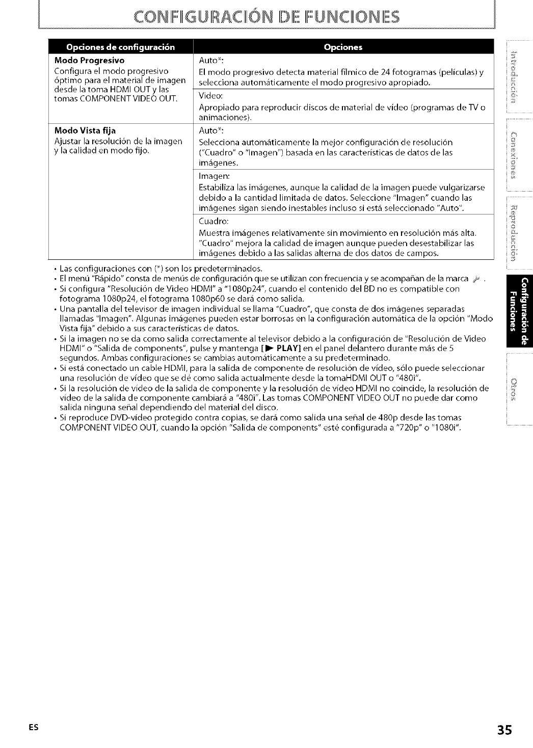 Terminal de RCA x 3 Y: 1Vp-p (75_) PB/CB: 700mVp-p (75_) PR/CR: 700mVp-p (75_)