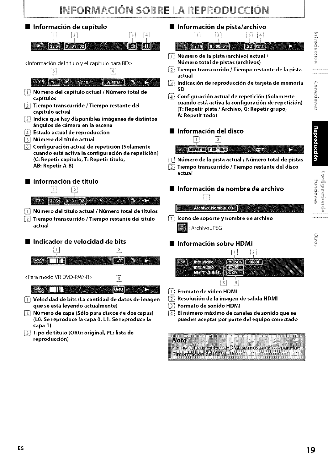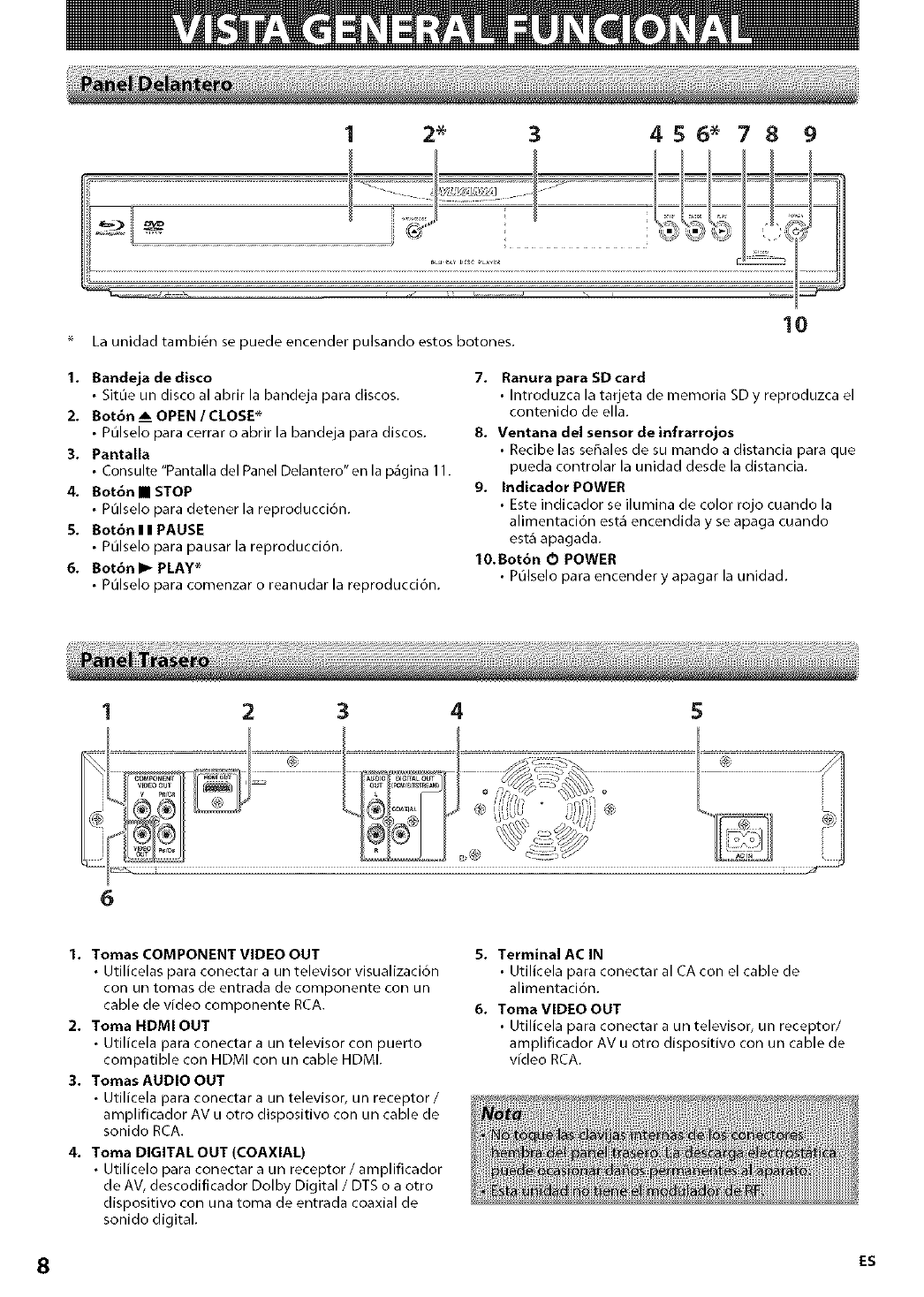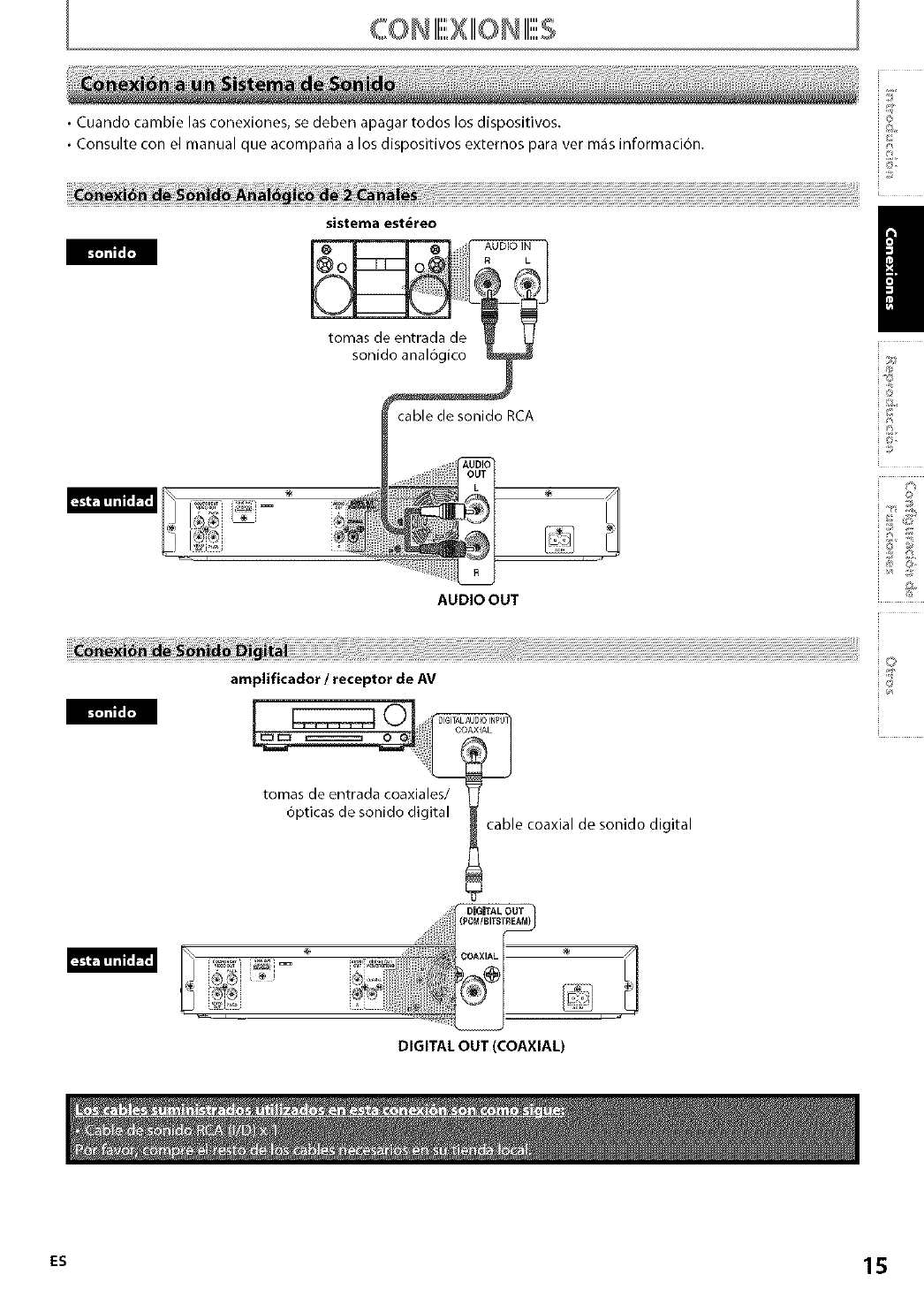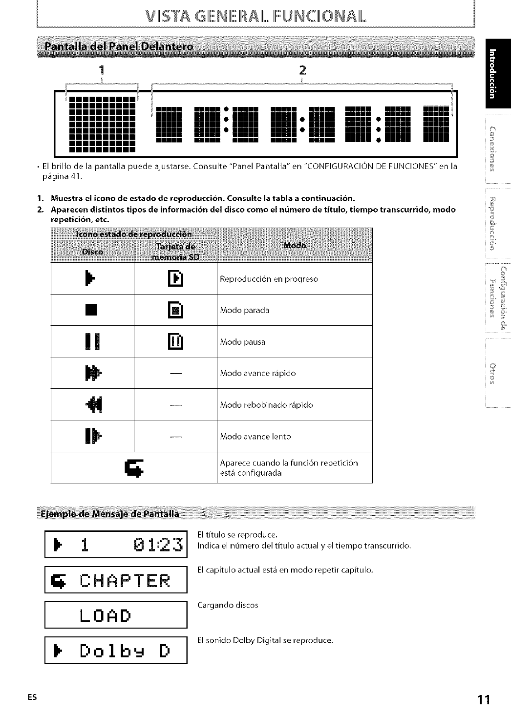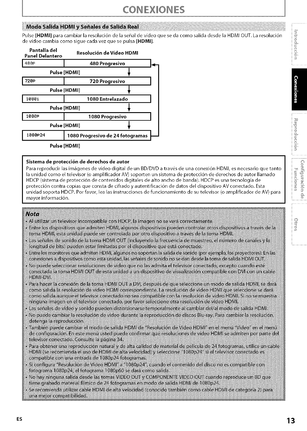 Terminal de RCA x 3 Y: 1Vp-p (75_) PB/CB: 700mVp-p (75_) PR/CR: 700mVp-p (75_)