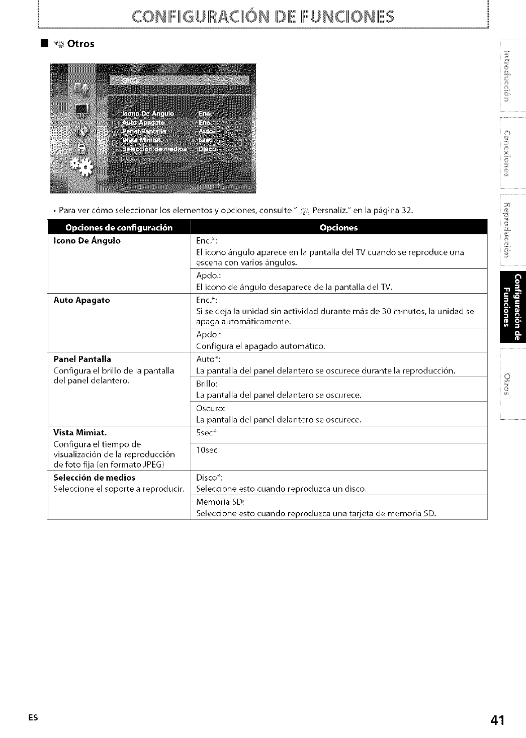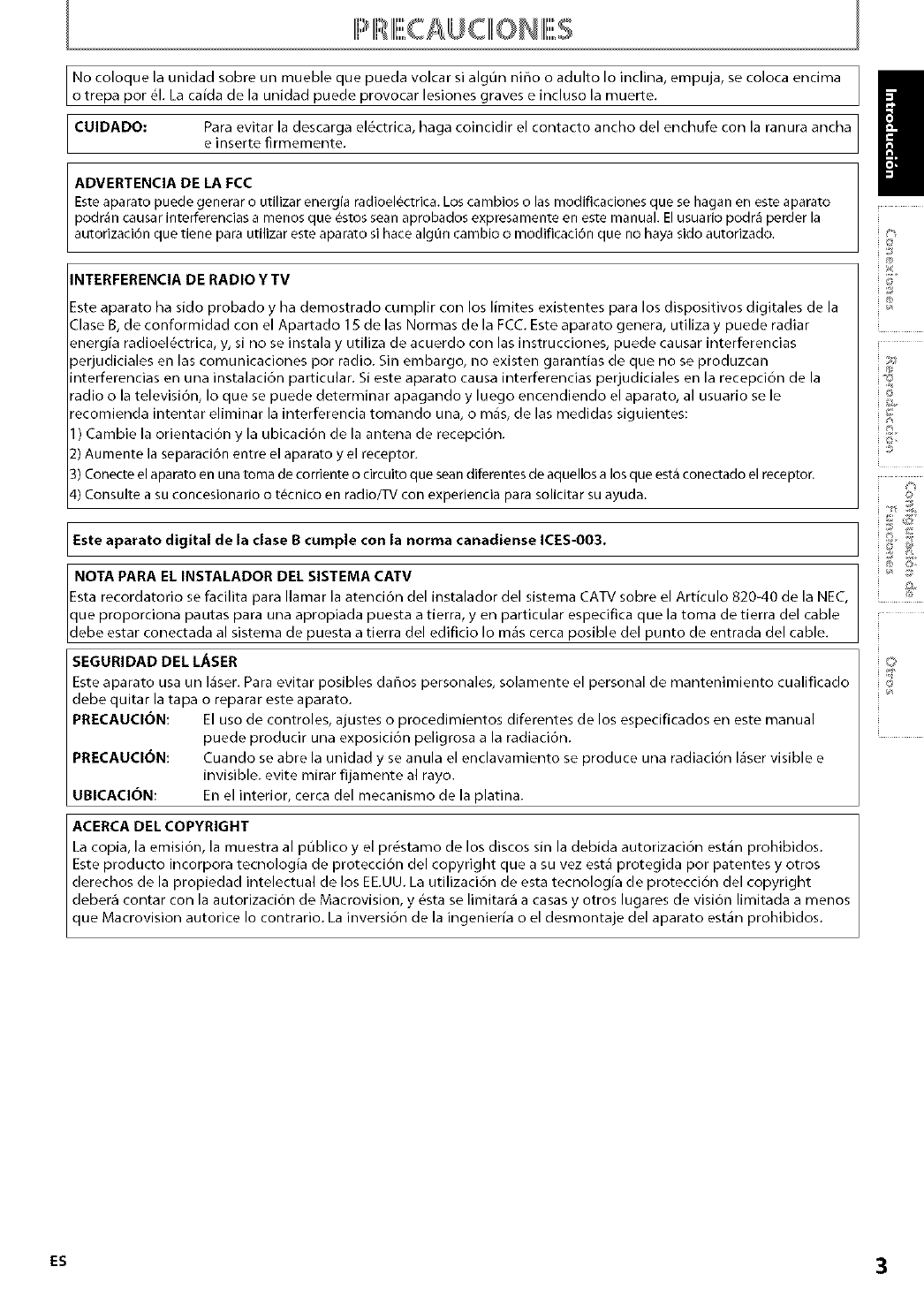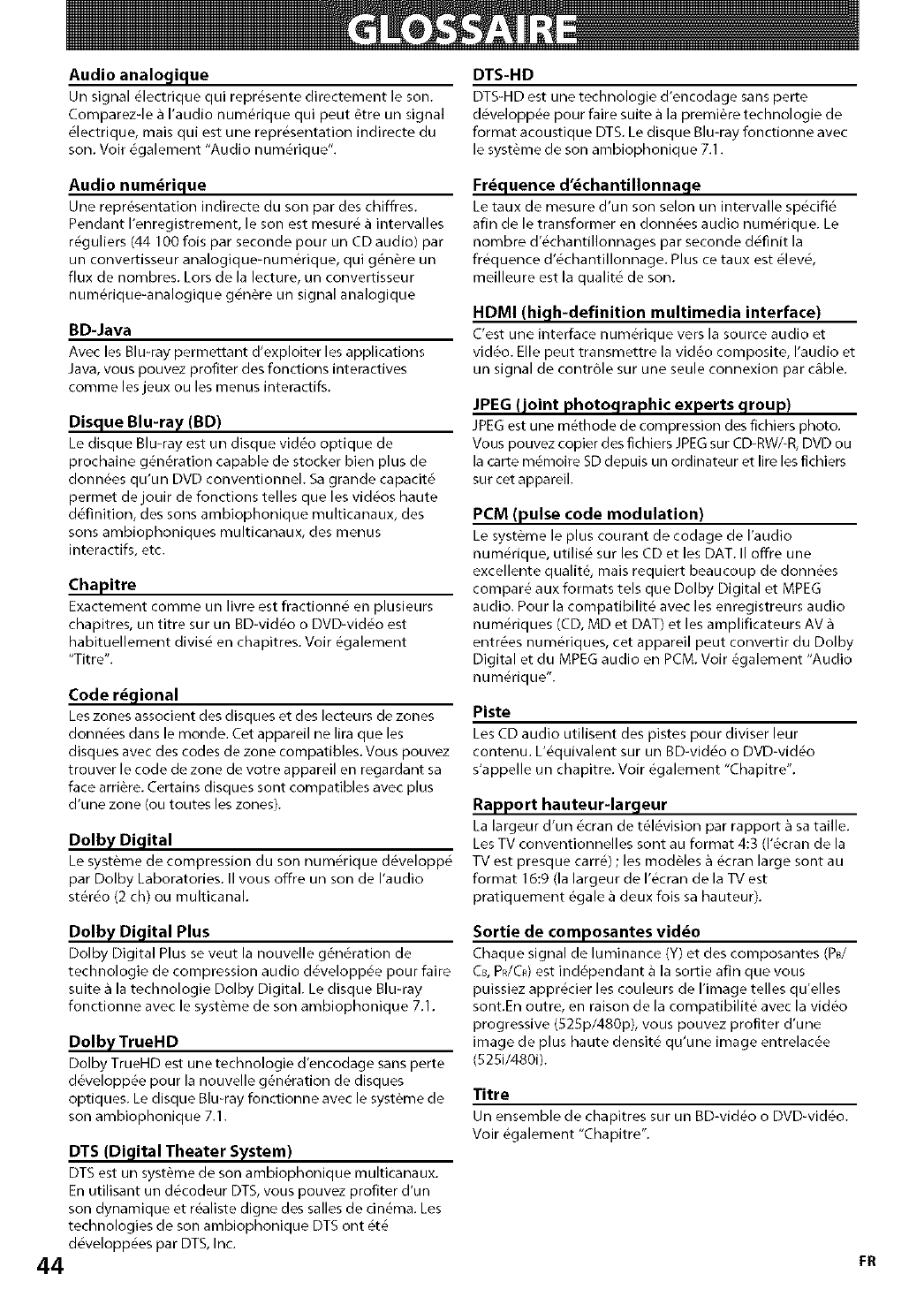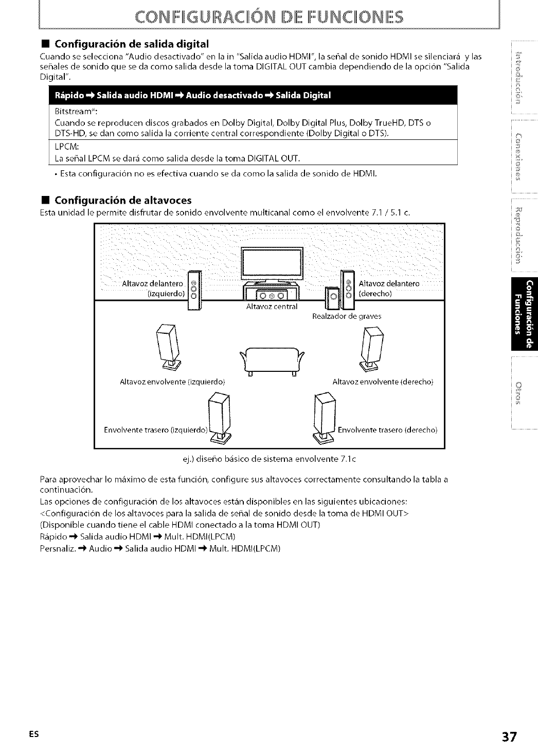 Terminal de RCA x 3 Y: 1Vp-p (75_) PB/CB: 700mVp-p (75_) PR/CR: 700mVp-p (75_)