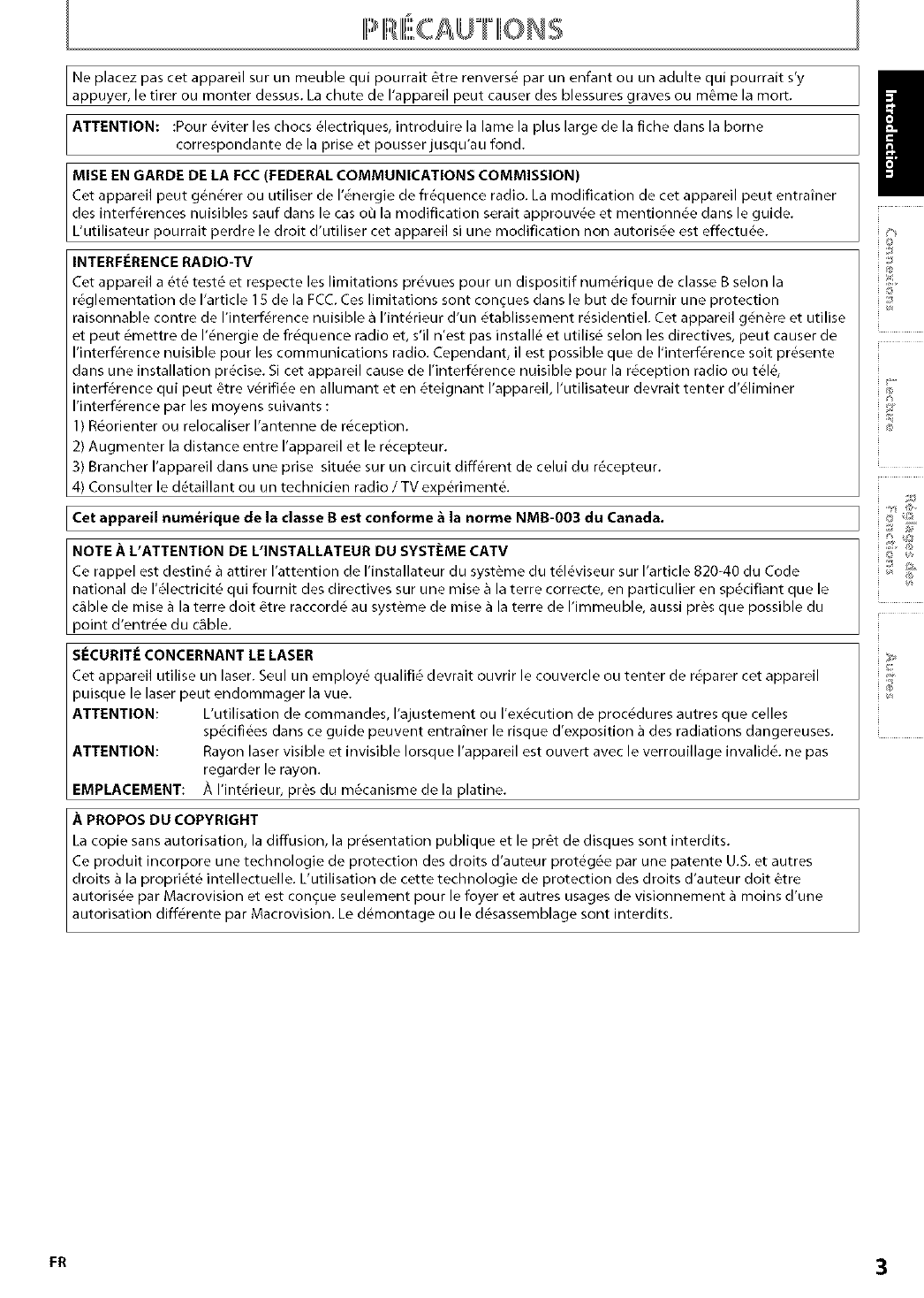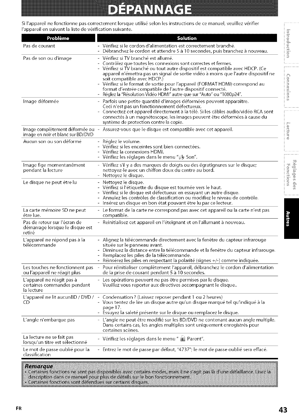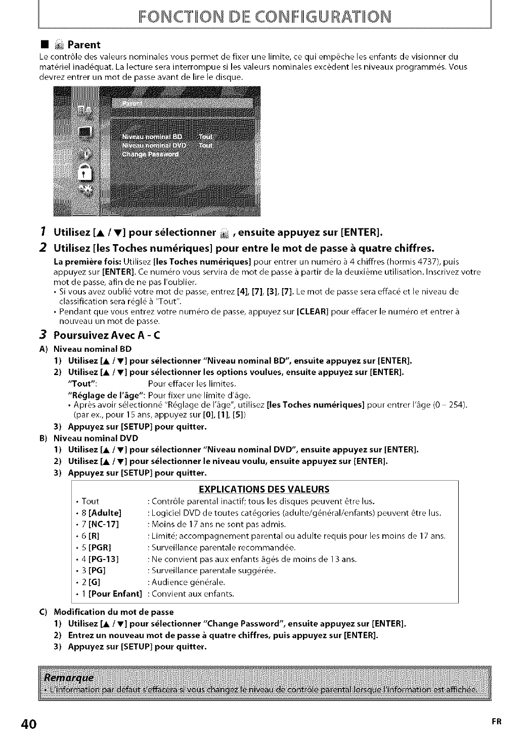 PIECES : FUNAI CORP. remplacera les pi_ces d_fectueuses sans frais pour une dur_e d'un (I) an suivant