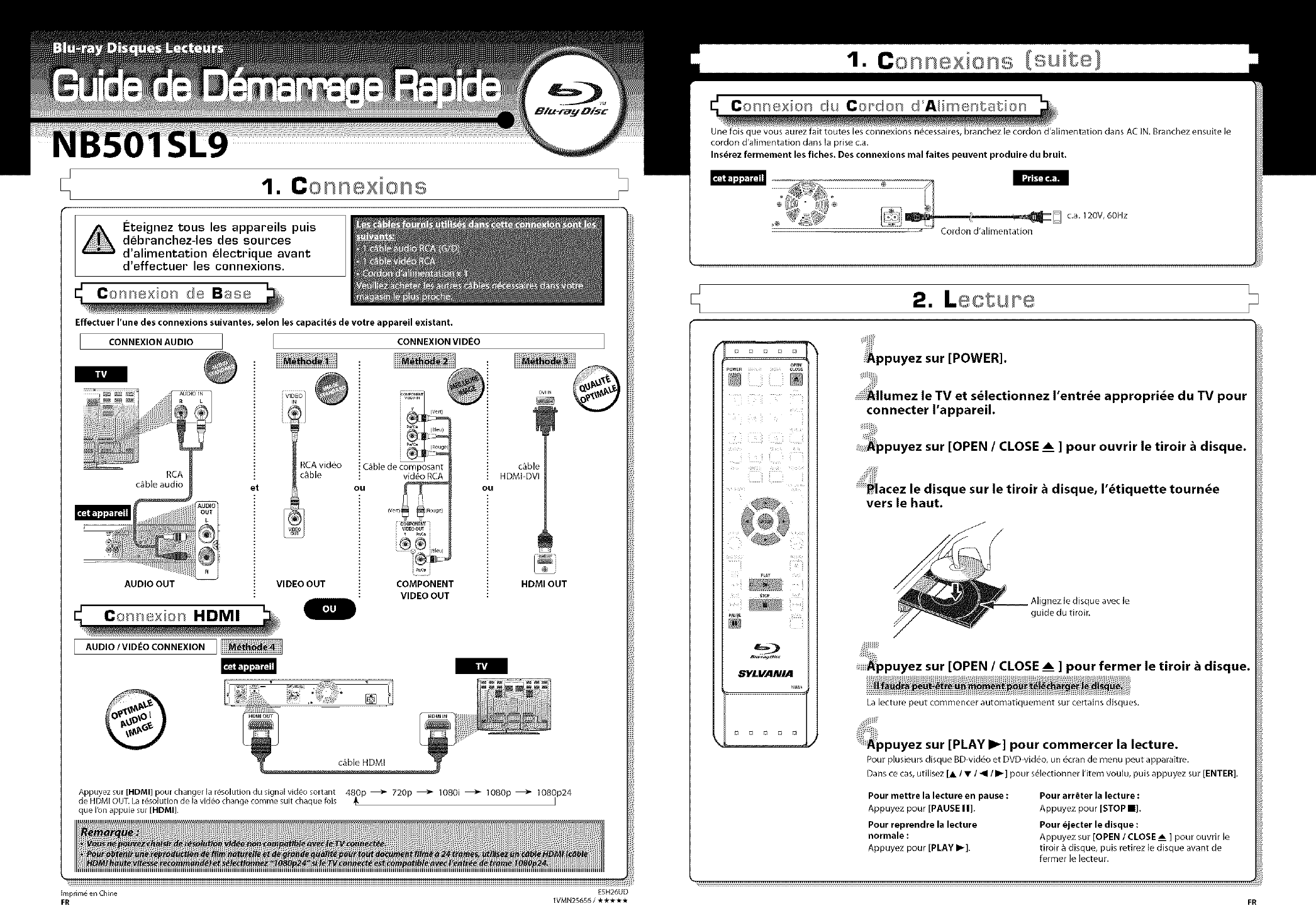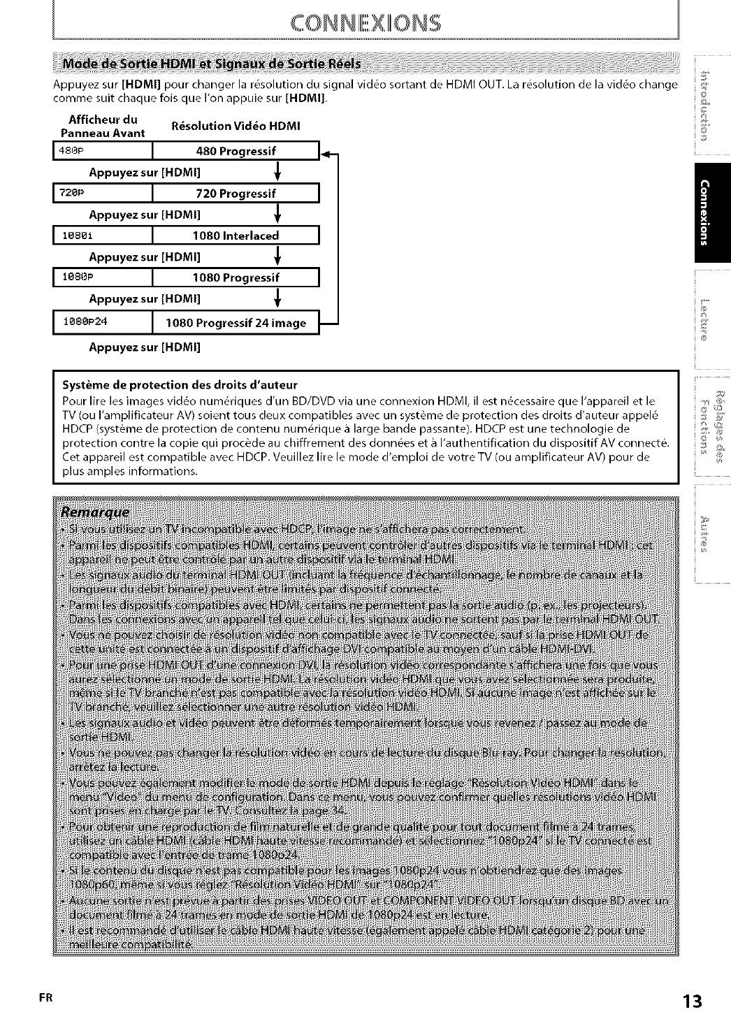 Prise HDMIx 1 Vid6o:480p, 720p, 1080i, 1080p, 1080p24 /Audio