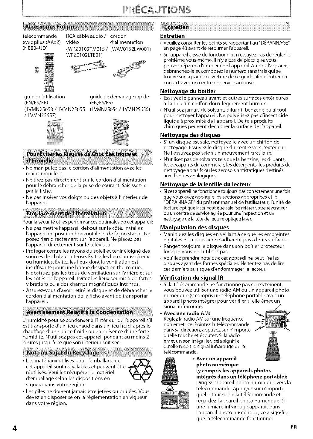 CETTE GARANTIE NE COUVRE PAS LE MATERIEL D'EMBALLAGE, LESACCESSOIRES (SAUF LA TELECOMMANDE), LES