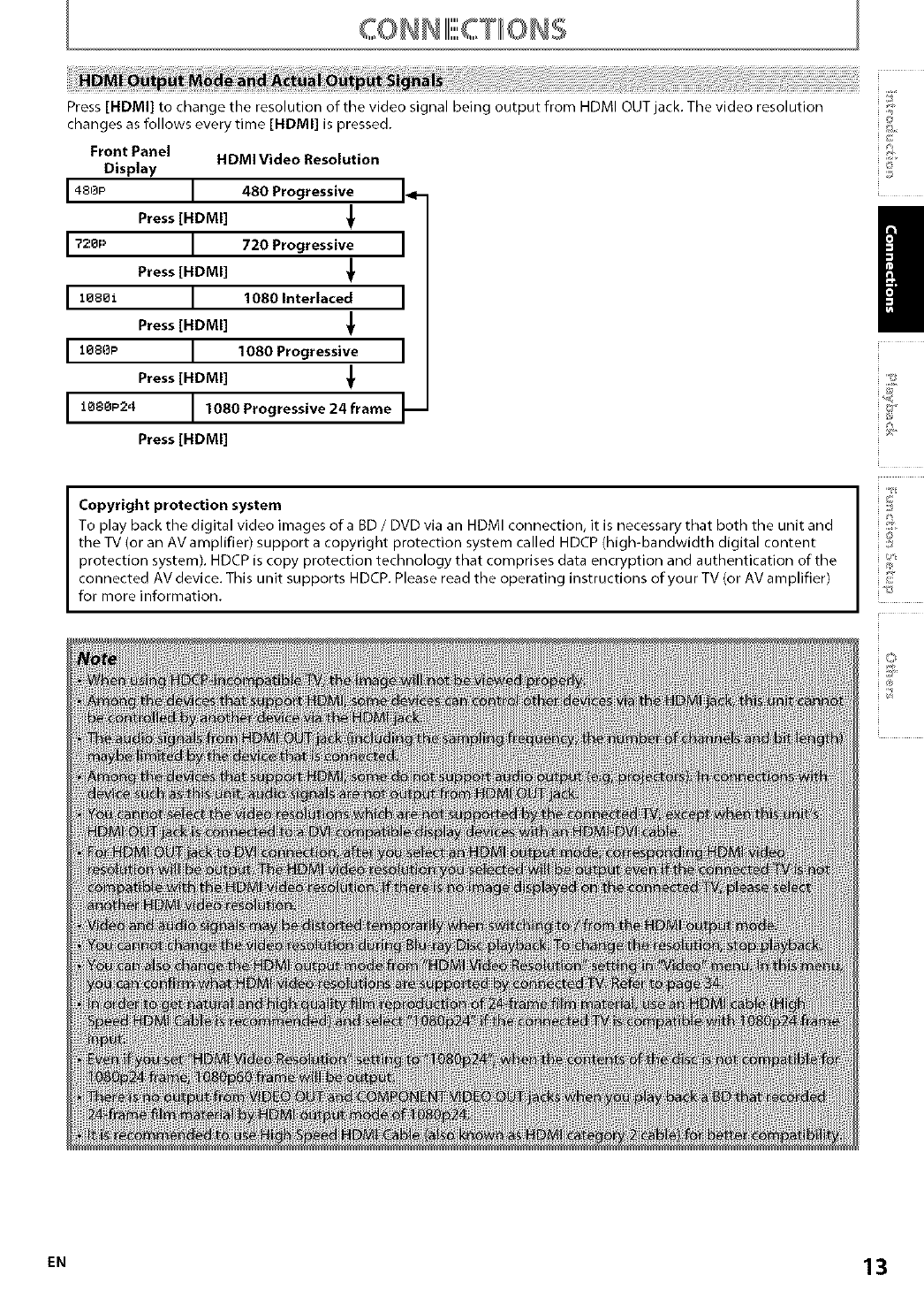 Press [HDMI] to change the resolution of the video signal being output from HDMI OUT jack.