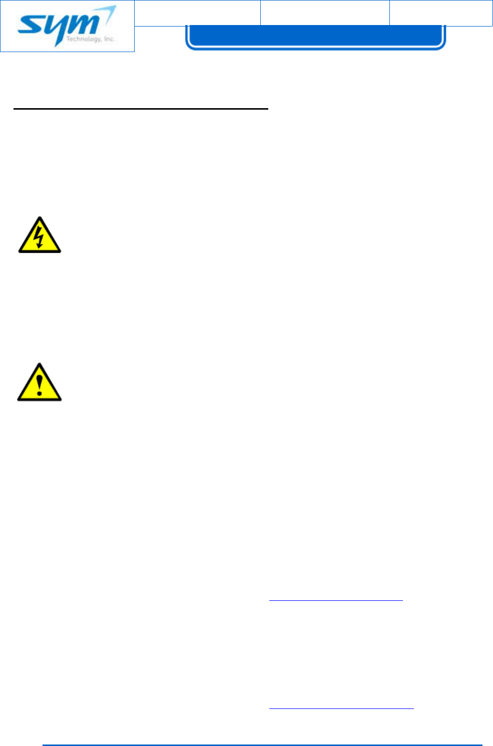 WhenreturningproductstoSYMTechnology,thefollowingprocedureswillensureoptimumresponse.