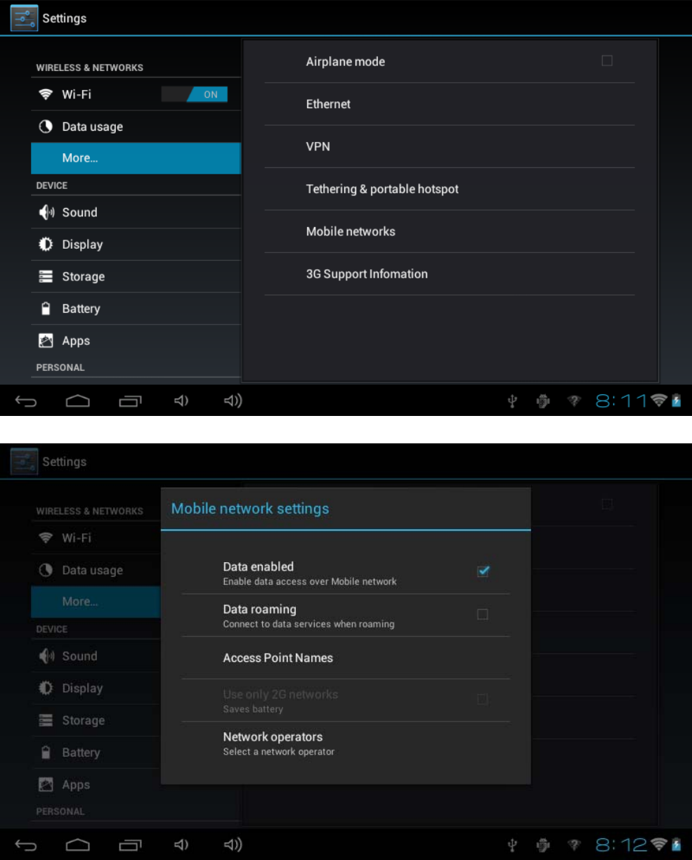 Mobile network settings