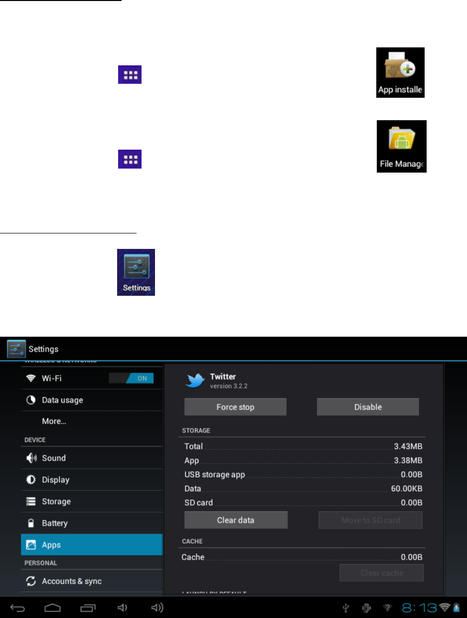 “Manage apps” - go a list of installed