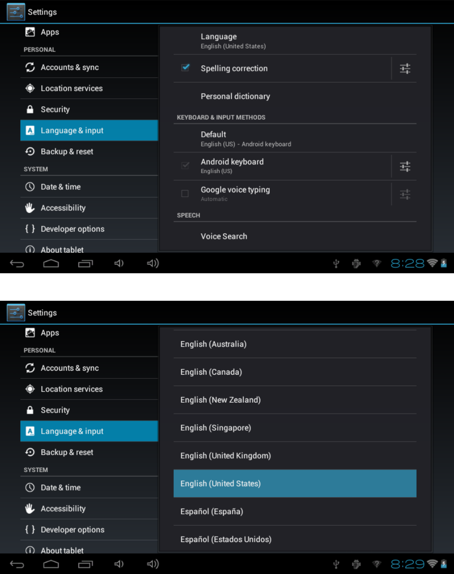 Go to desktop Setting Language & Input Language & input