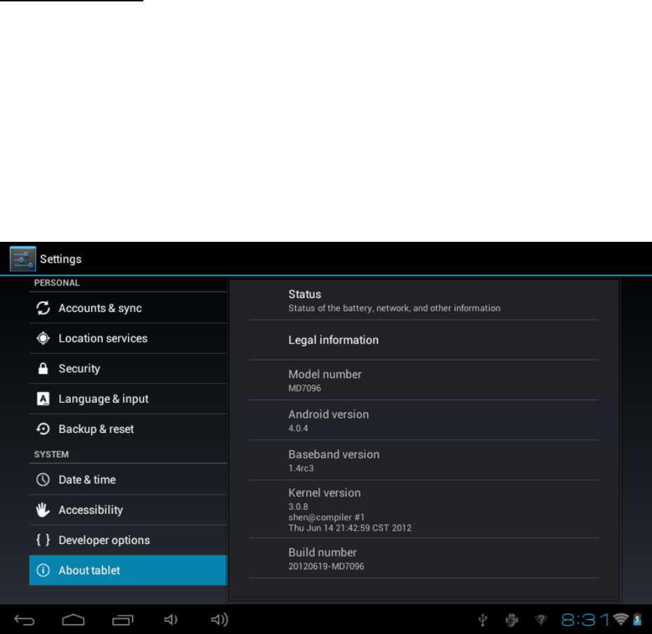 Setting About tablet