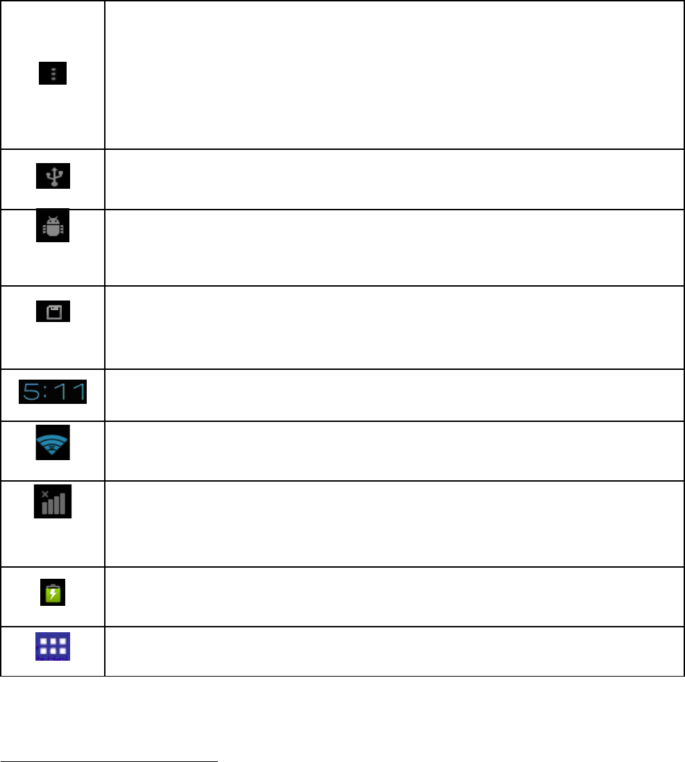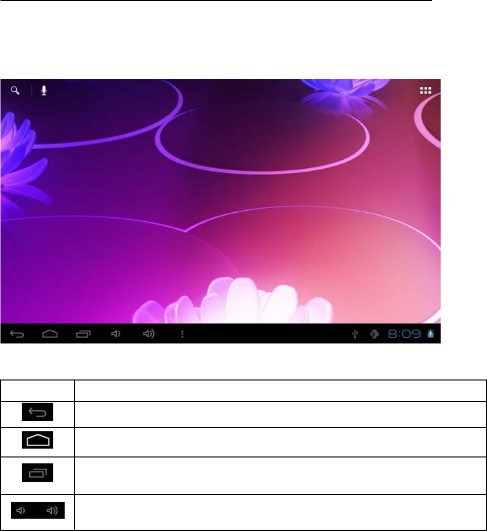 The desktop status bar and shortcut menu and the definition of the icons