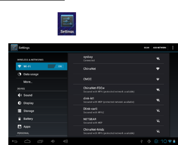 WIFI network settings