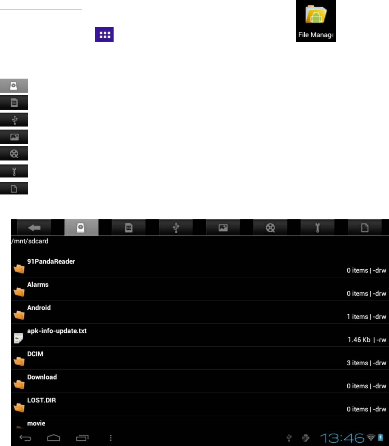 to view a list of folders and files from external USB storage