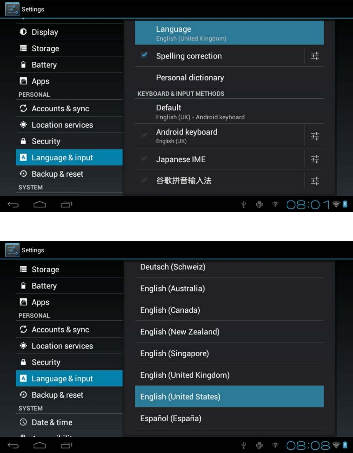 Go to desktop Setting Language & Input Language & input