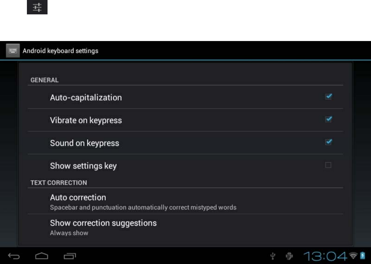 From the Android keyboard settings menu, you can setup: