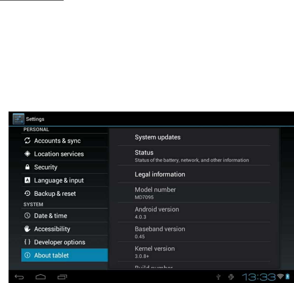 Setting About tablet