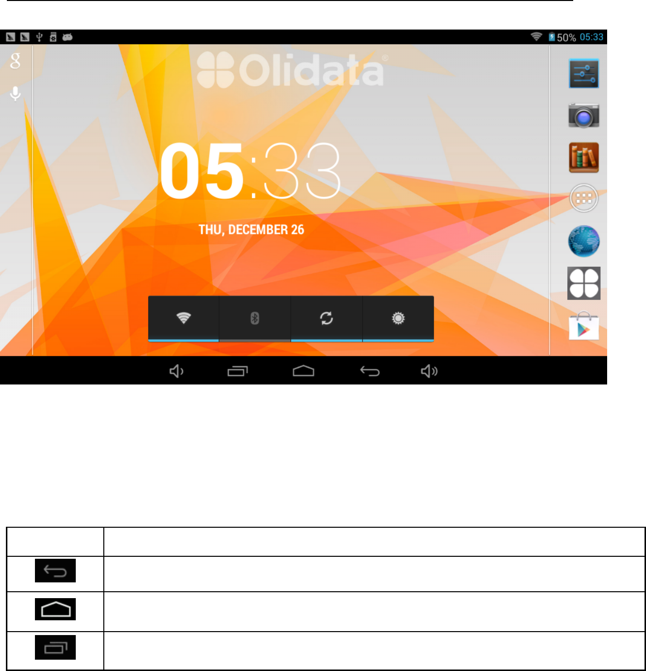 The desktop status bar and shortcut menu and the definition of the icons