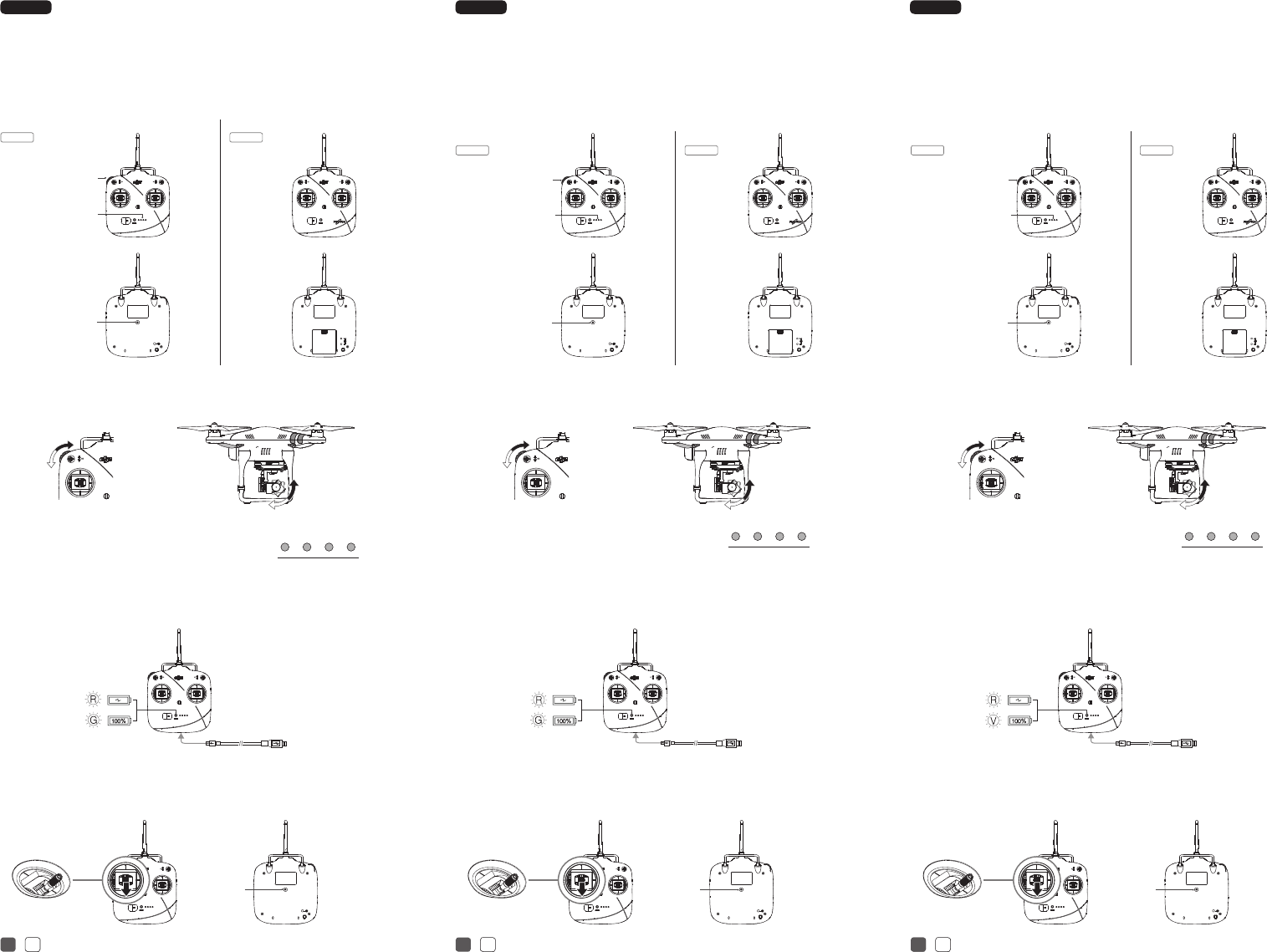 3. Charge de la télécommande: Charge la batterie LiPo intégrée avec le Phantom RC