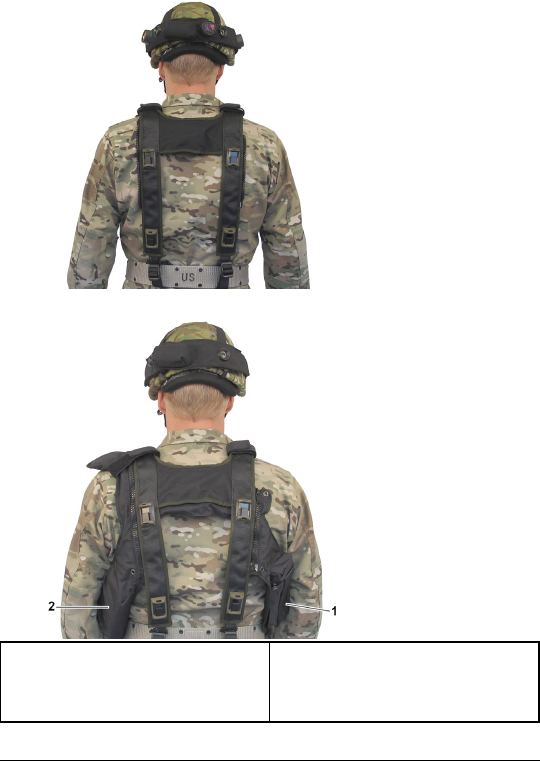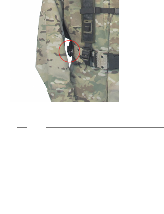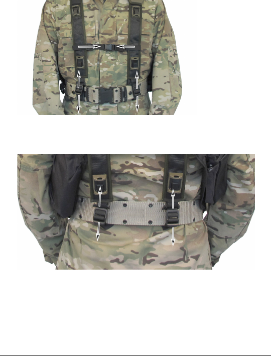 3. Put the rear straps around the combat harness belt and
